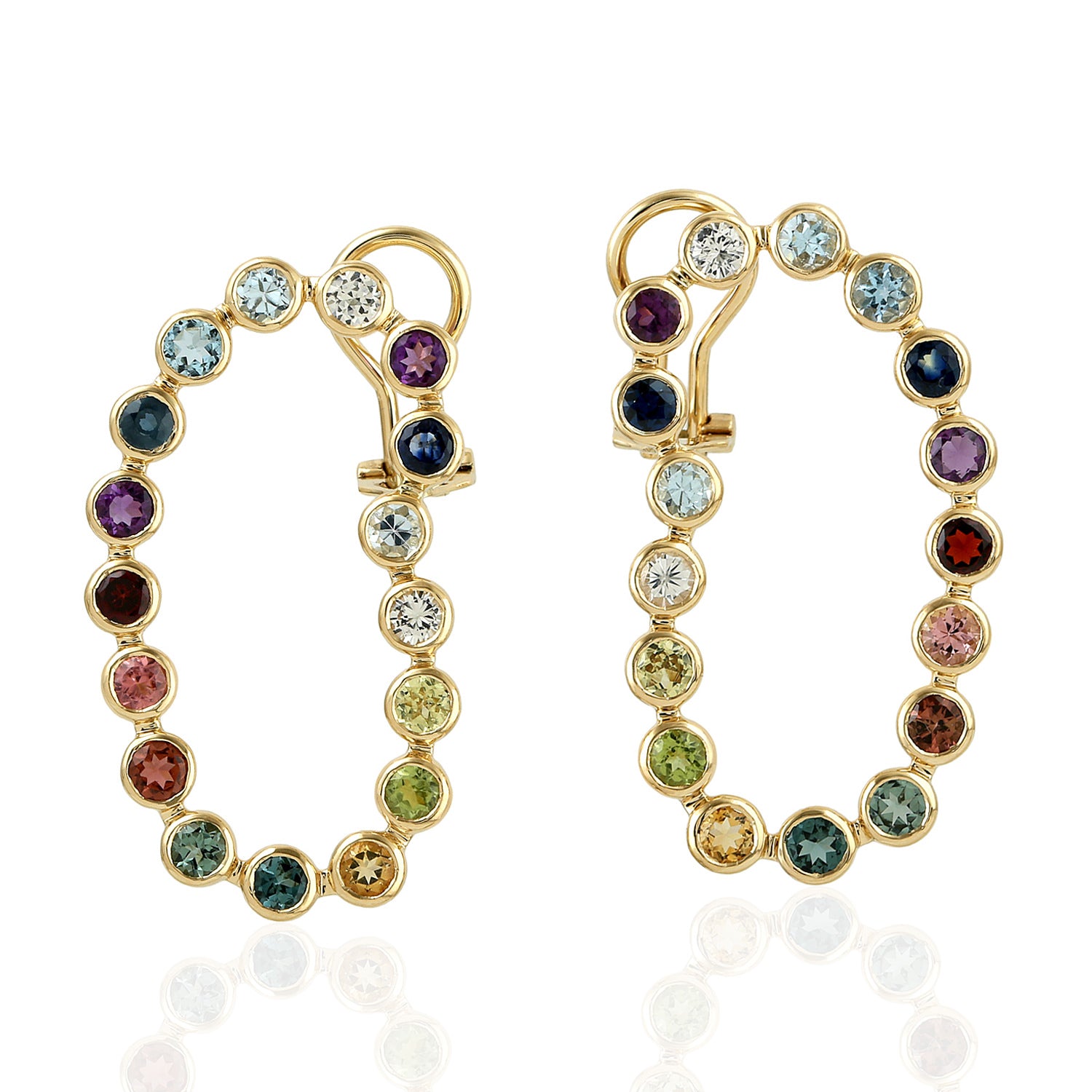 Blue Topaz Amethyst Sapphire Multi Tourmaline Gemstone Dangler In Gold