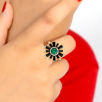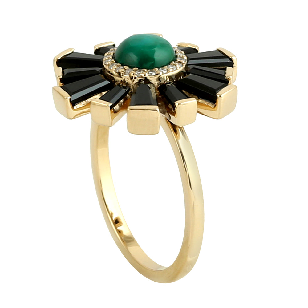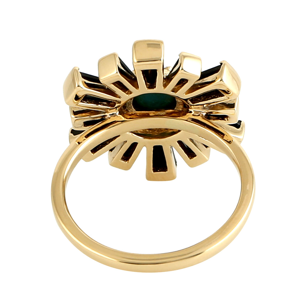 Chrysocolla Baguette Cut Spinel Gemstone Pave Diamond In Solid Gold Ring
