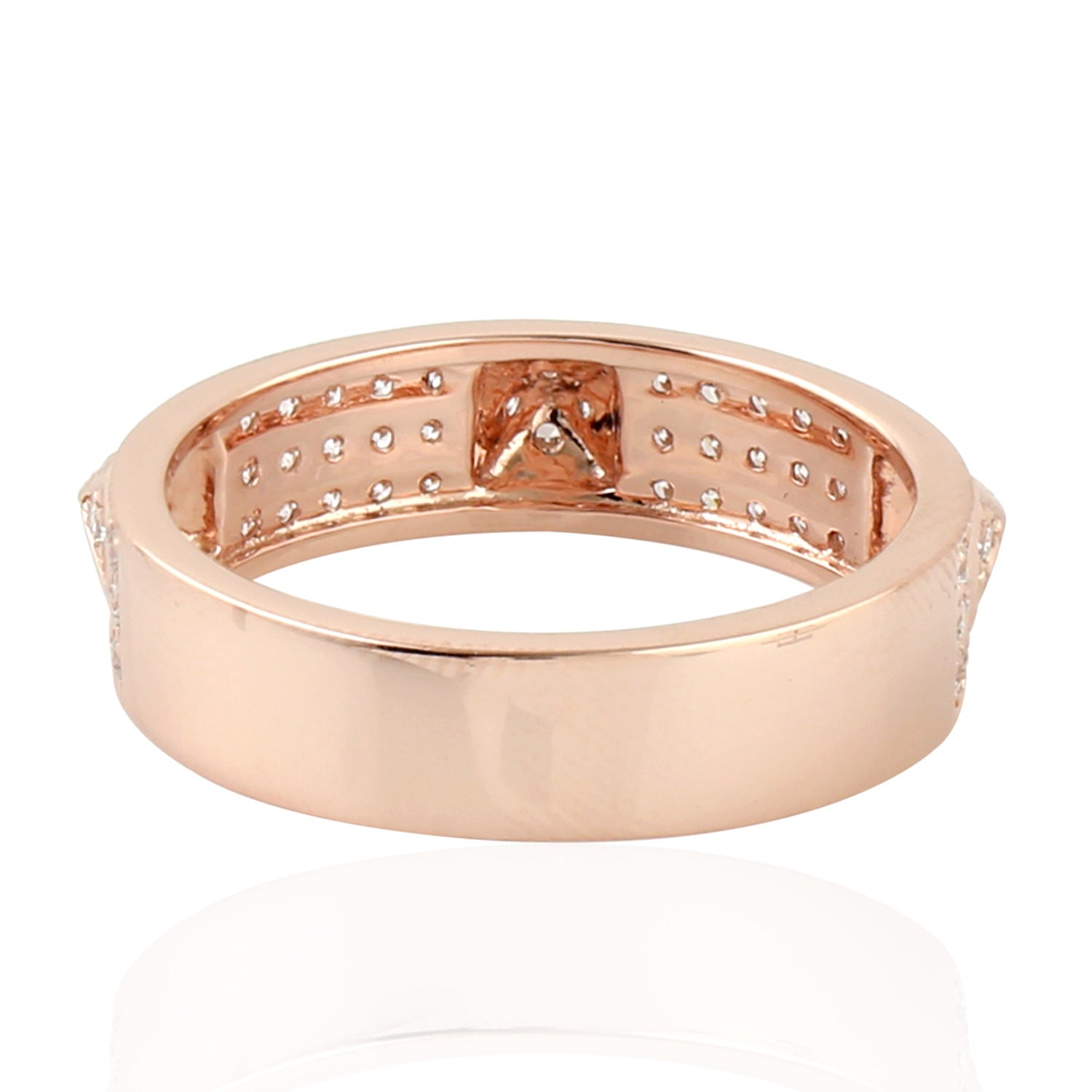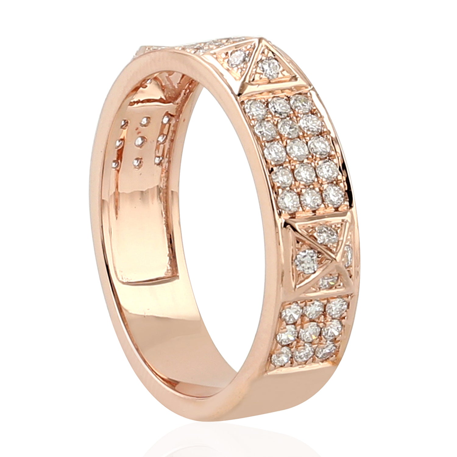 18K Rose Gold Pave Diamond Pyramid Band Ring Handmade Jewelry