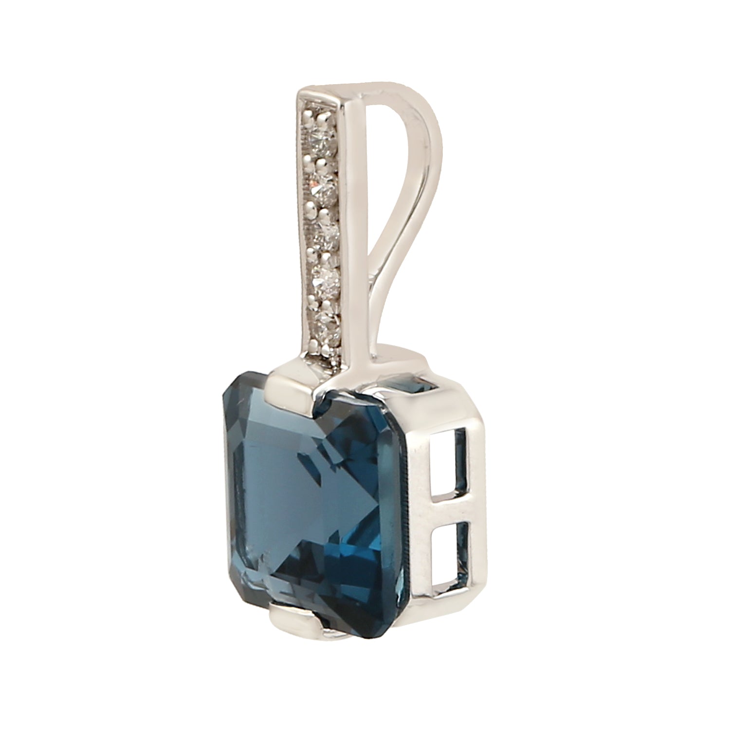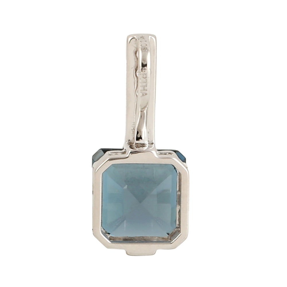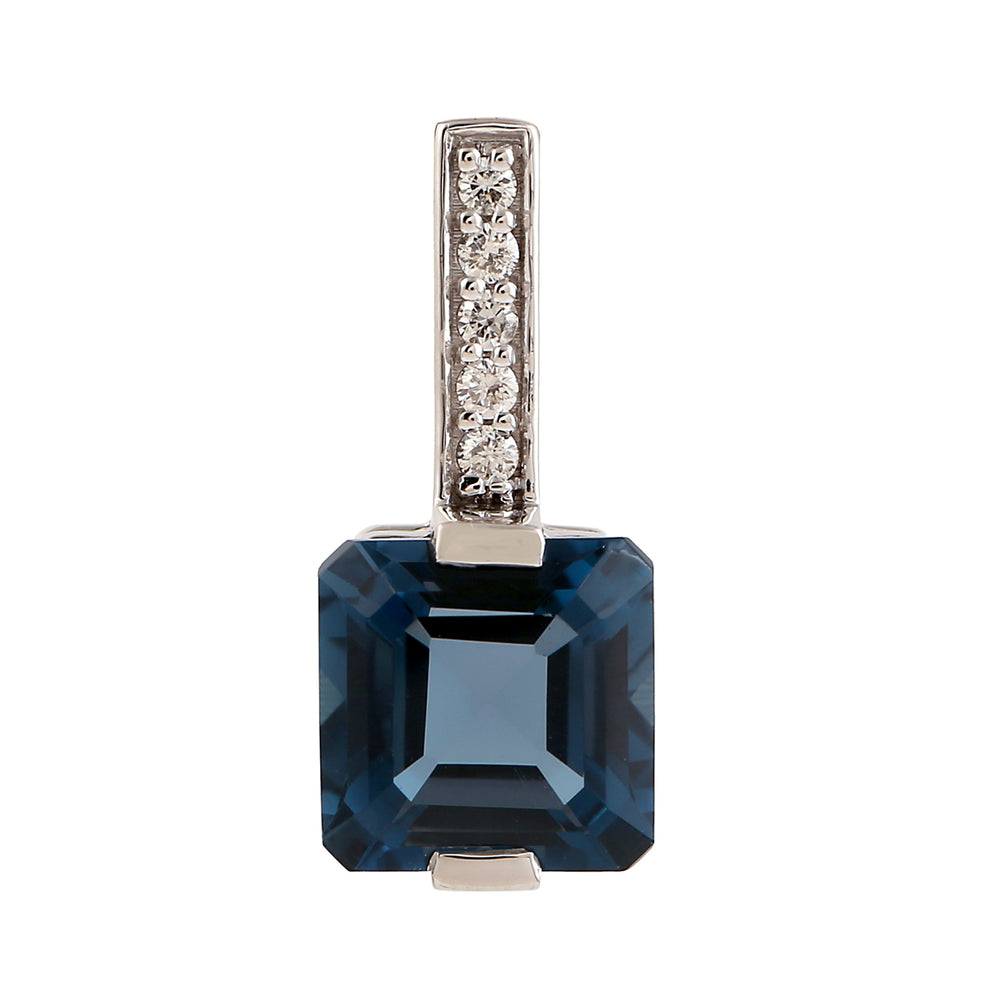 Emerald Cut London Topaz Pave Diamond Designer Pendant In 18k White Gold