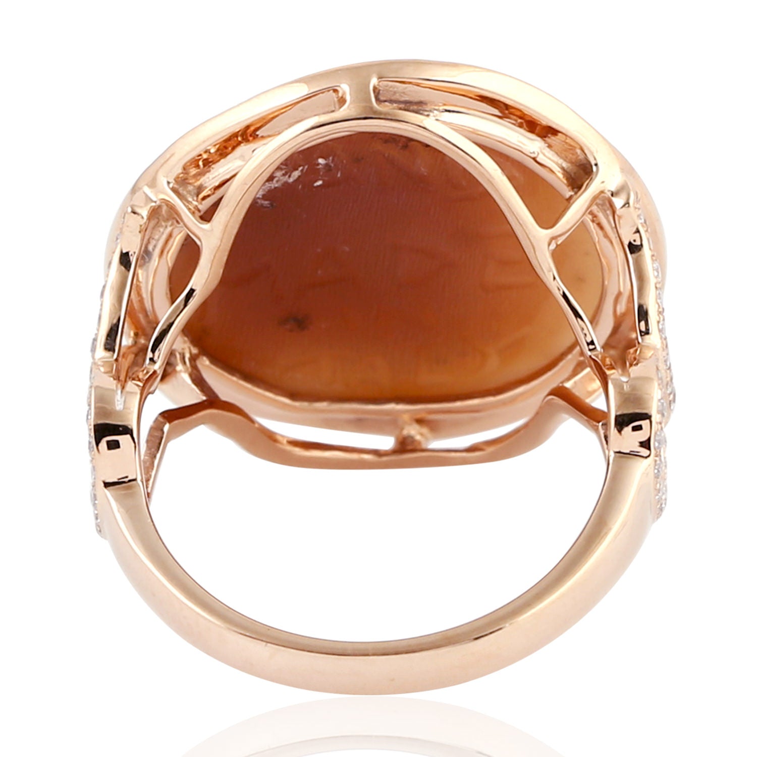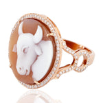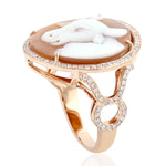 Engraved Cow Shell Cameo Cocktail Ring with Pave Diamonds in 18k Rose Gold