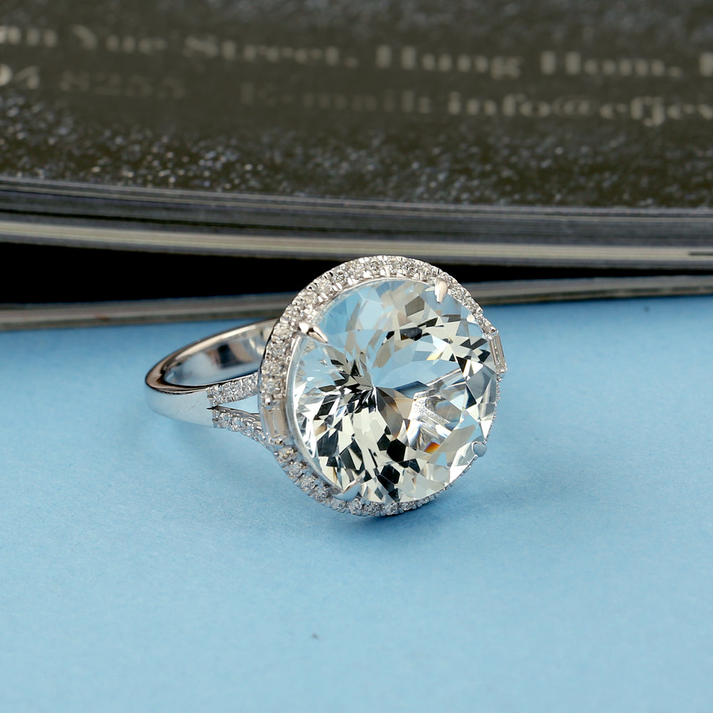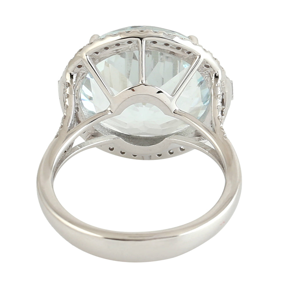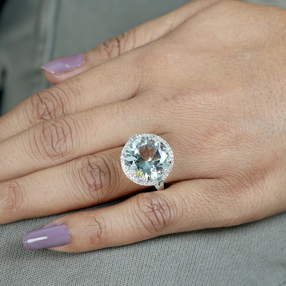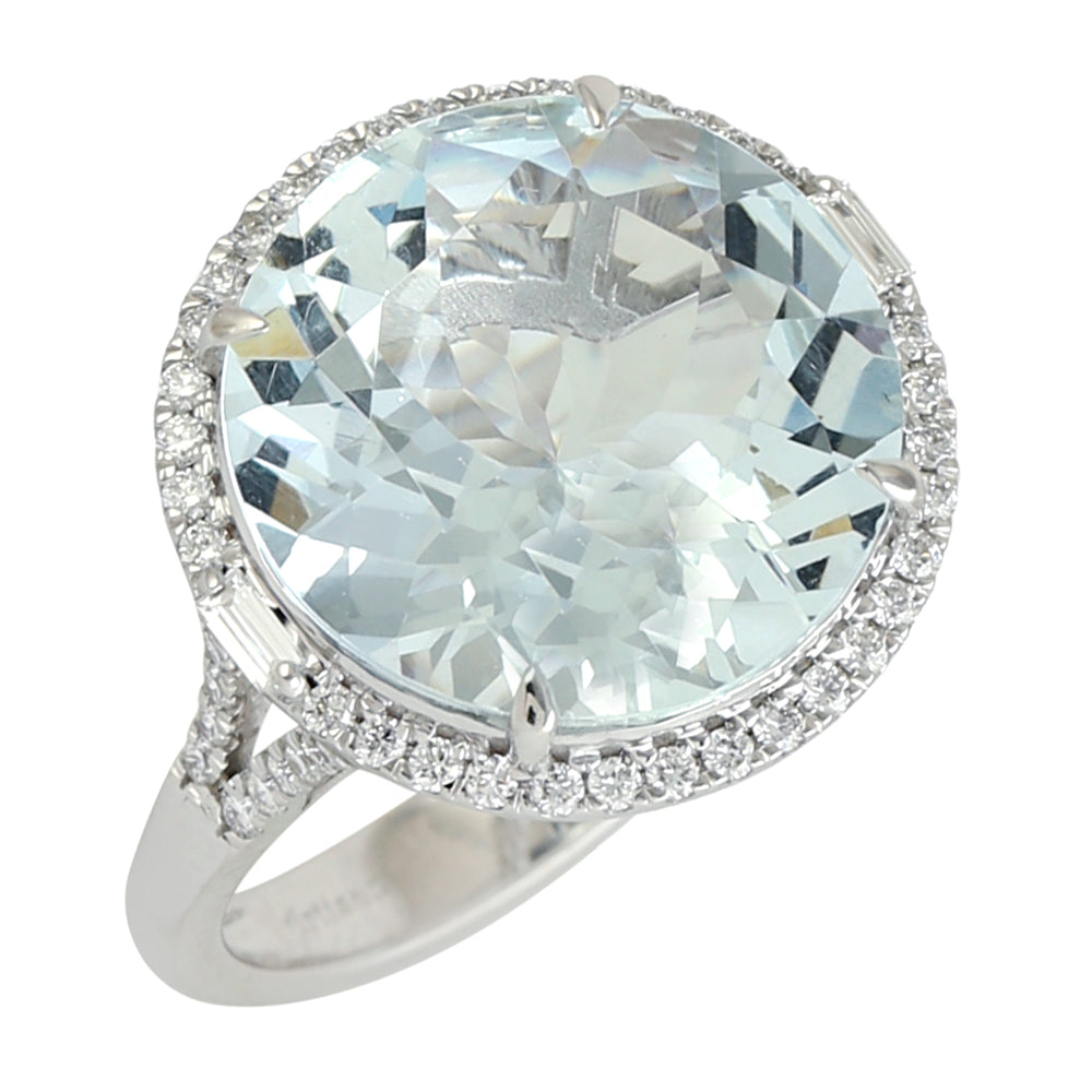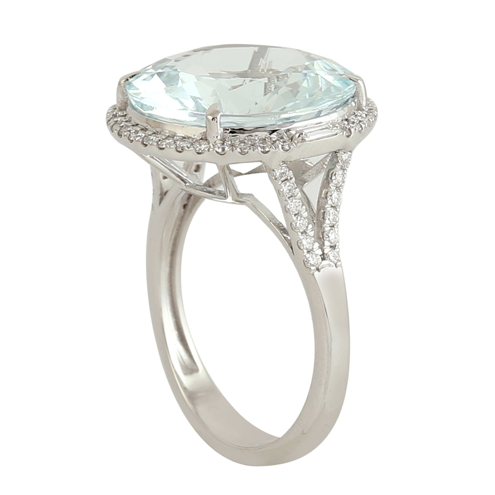 Faceted Aquamarine Gemstone Pave Diamond Cocktail Ring In 18k White Gold