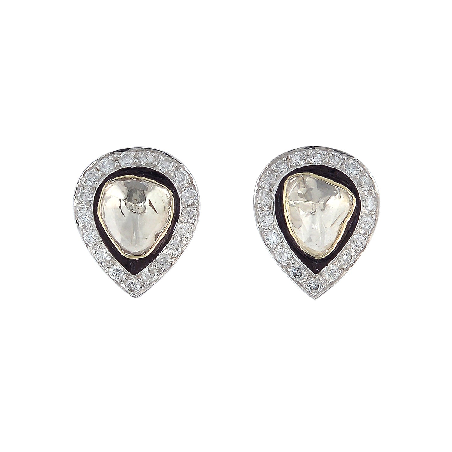 Genuine Uncut Diamond Designer Stud Earrings in 18K White Gold – Handmade for Her