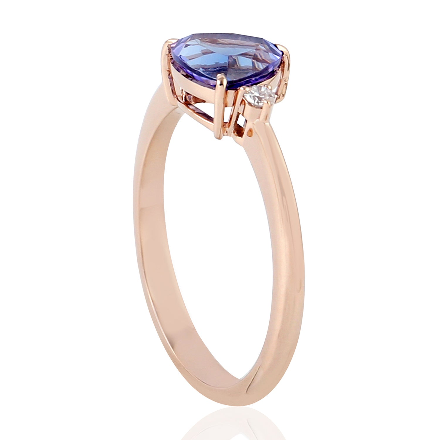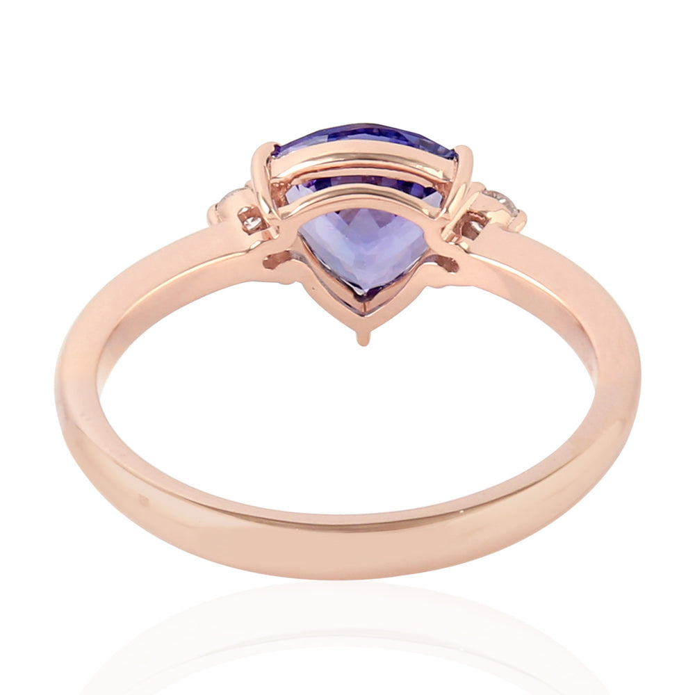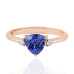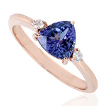 14K Rose Gold Prong Diamond Trillion Tanzanite Ring For Gift
