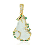 Ethiopian Opal, Prong Emerald & Pave Diamond Pendant in 18K Yellow Gold – Fine Jewelry Gift