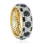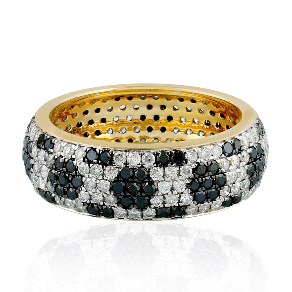 • Black And White Diamond Handmade Cow Design Band Ring In Yellow Gold