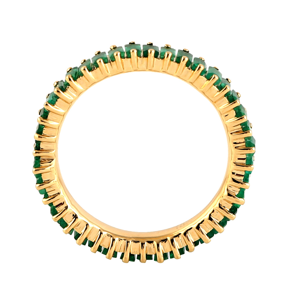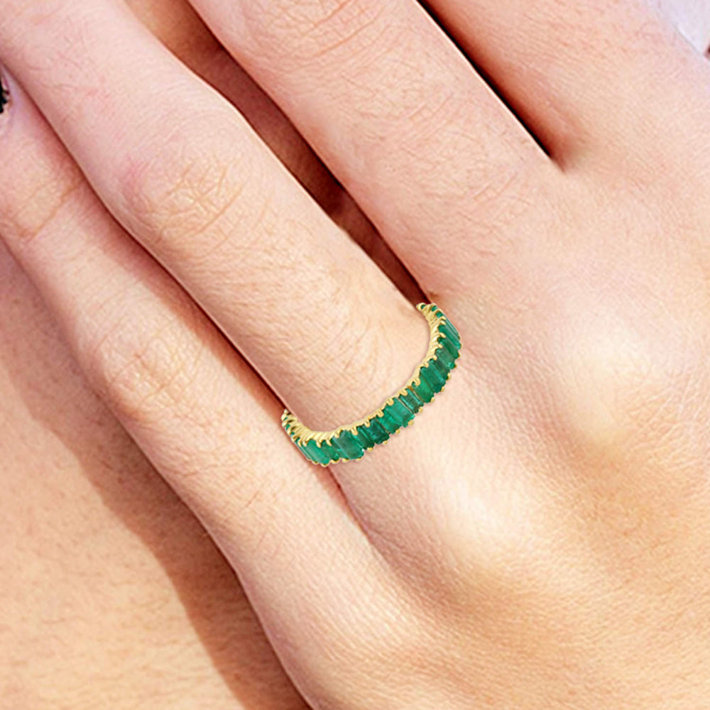 Baguette Cut Emerald Band Ring In Yellow Gold Handmade Jewelry Gift