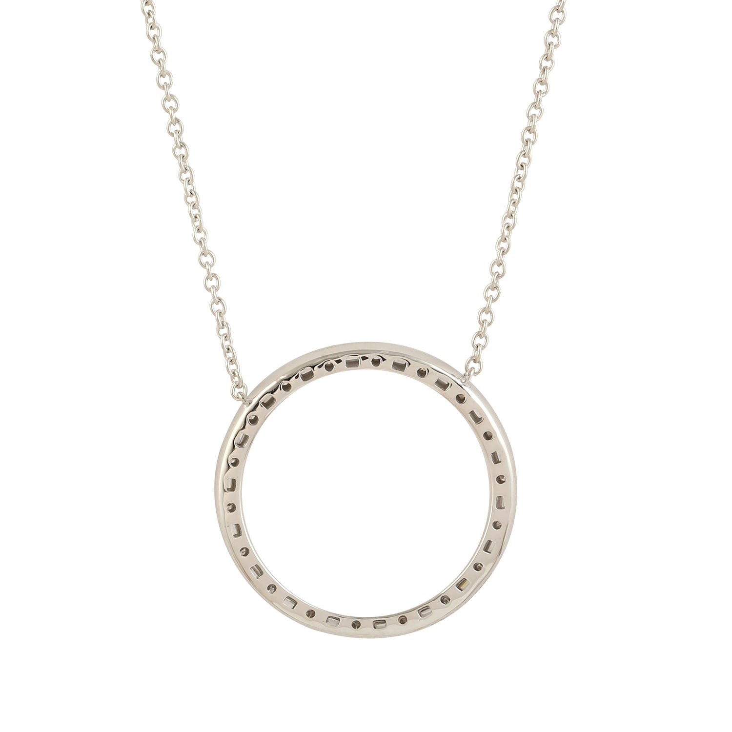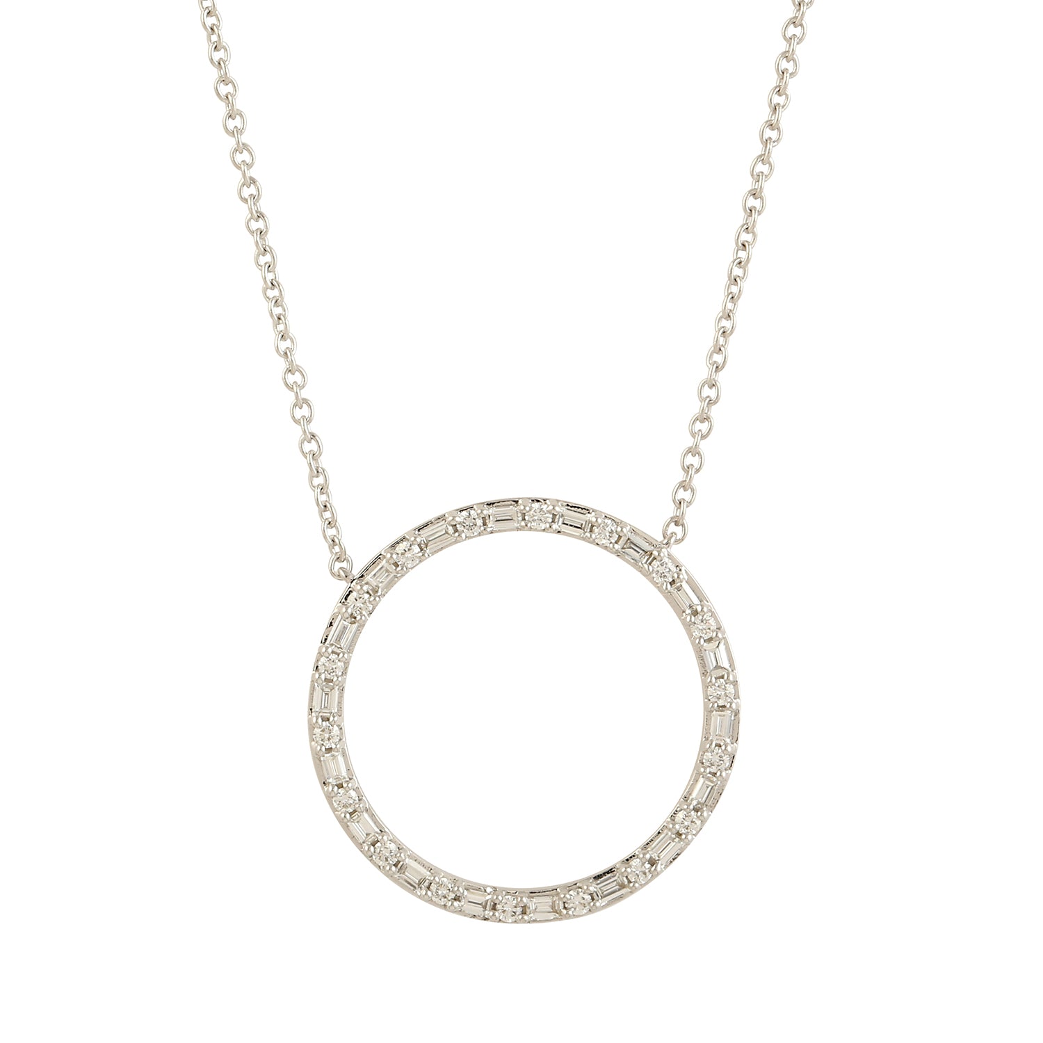 • Baguette Diamond Round Hollow Pendant Necklace in 18K White Gold