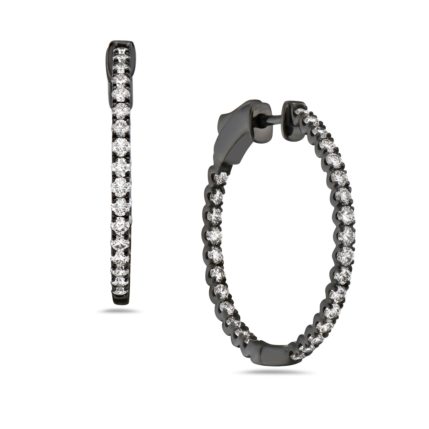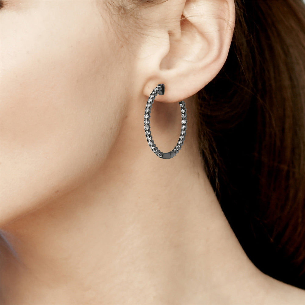 14k White Gold Handmade Pave Diamond Hoop Earrings Jewelry