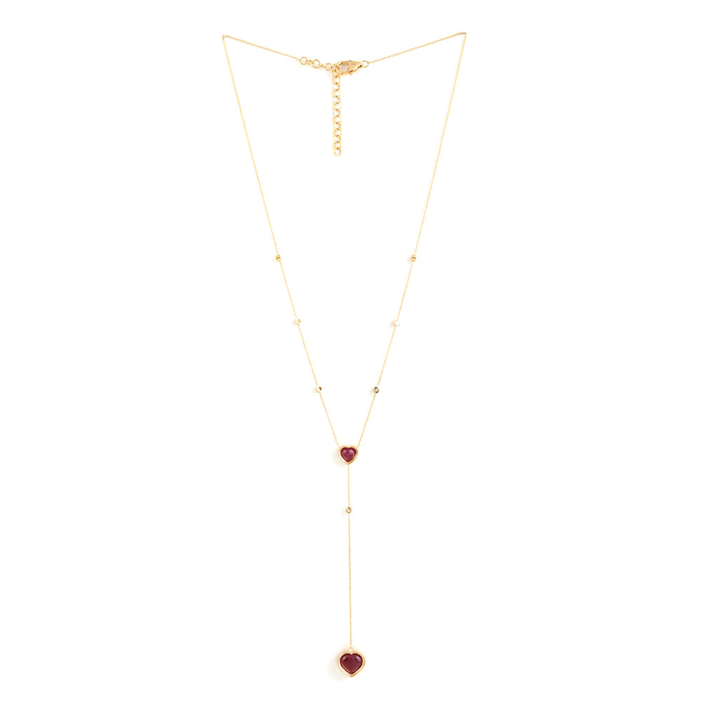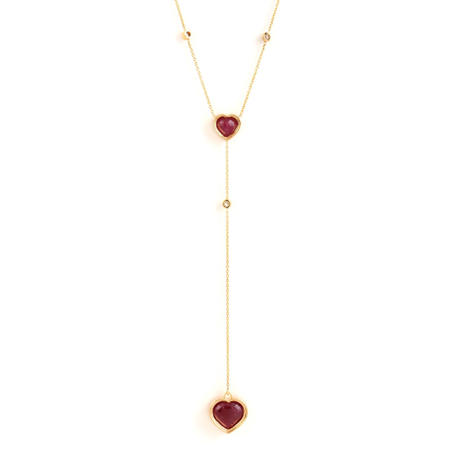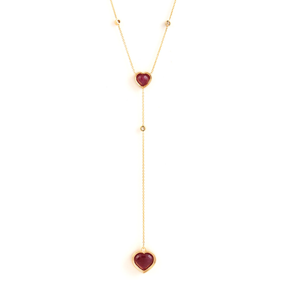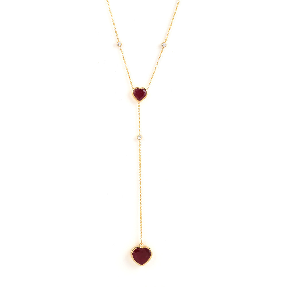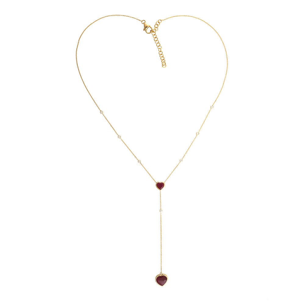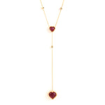 Heart Lariat Necklace with Ruby Gemstone & Diamond Accents in 18K Yellow Gold