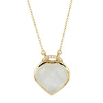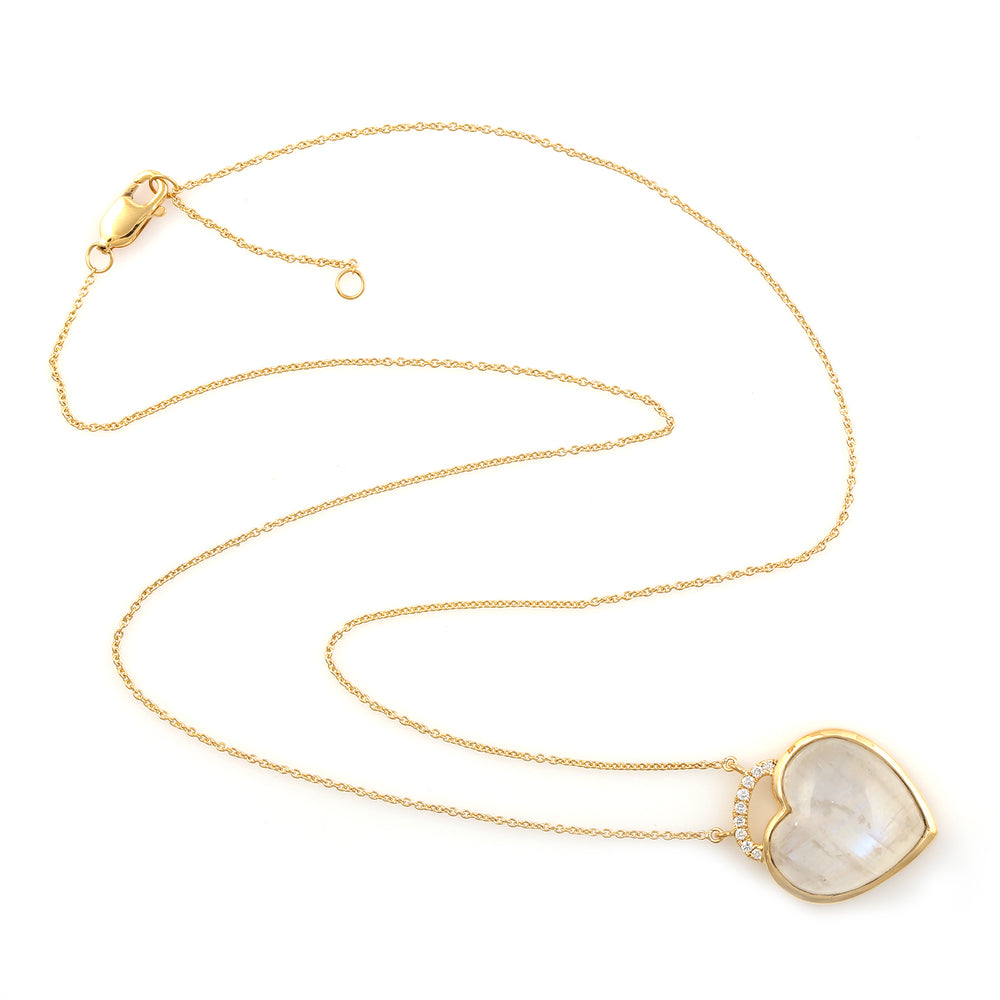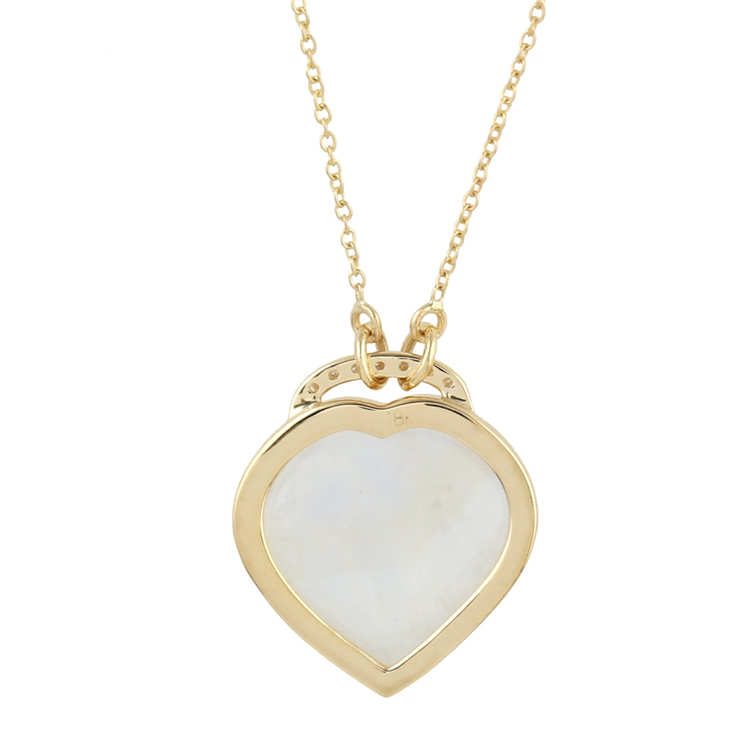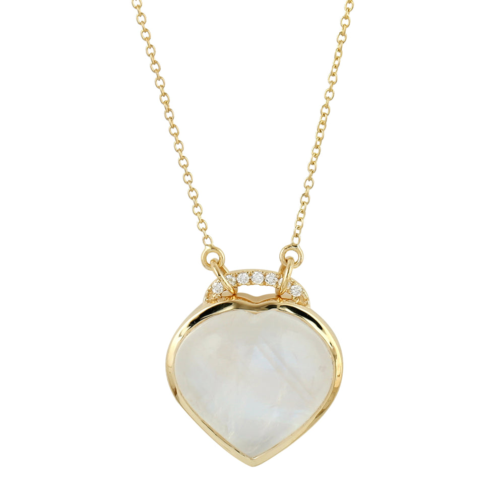 Moonstone Heart Shape Pave Diamond Handmade Princess Necklace In 18k Yellow Gold