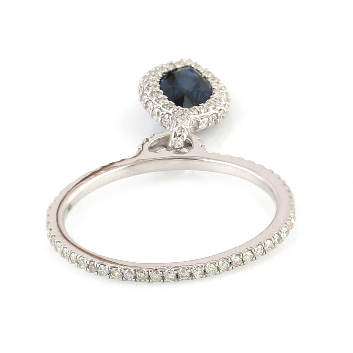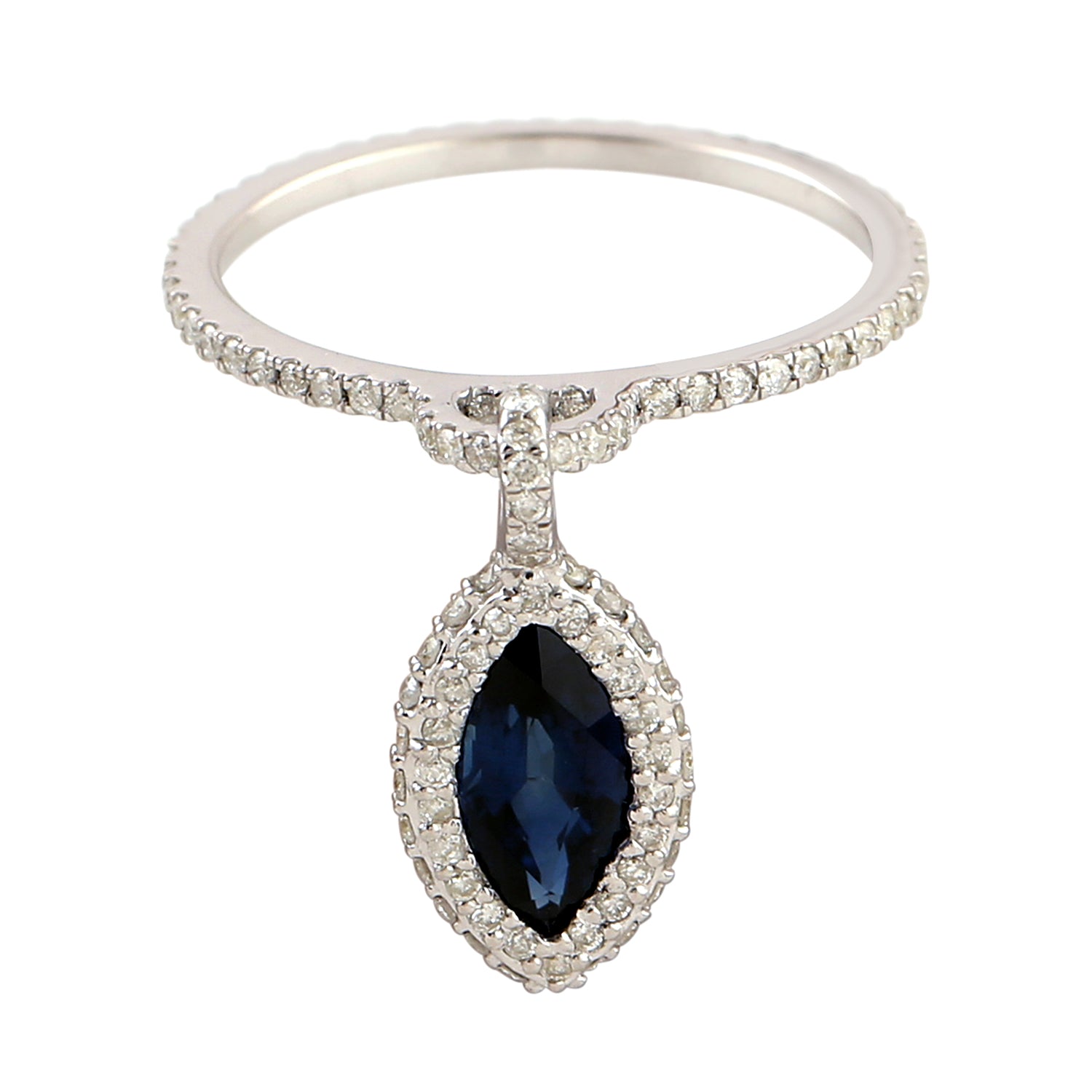 Marquise Blue Sapphire Gemstone Pave Diamond Charm Ring In White Gold