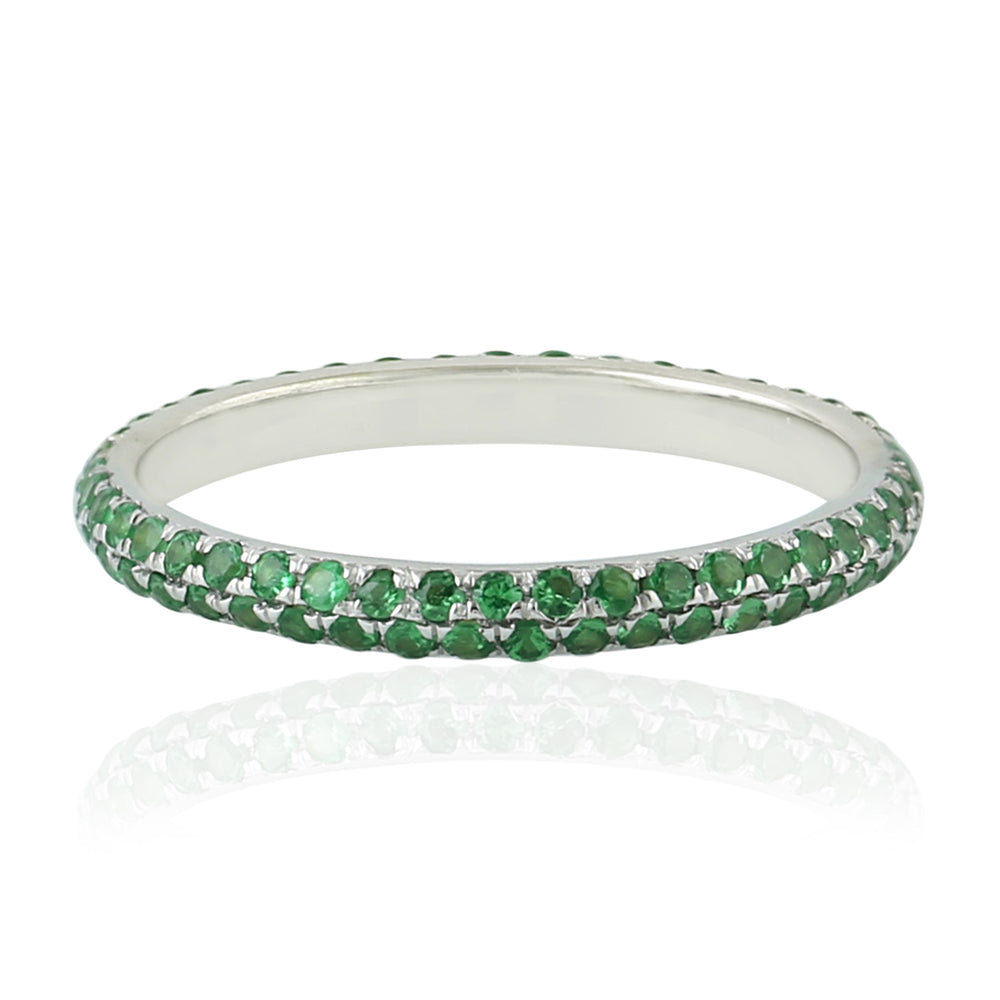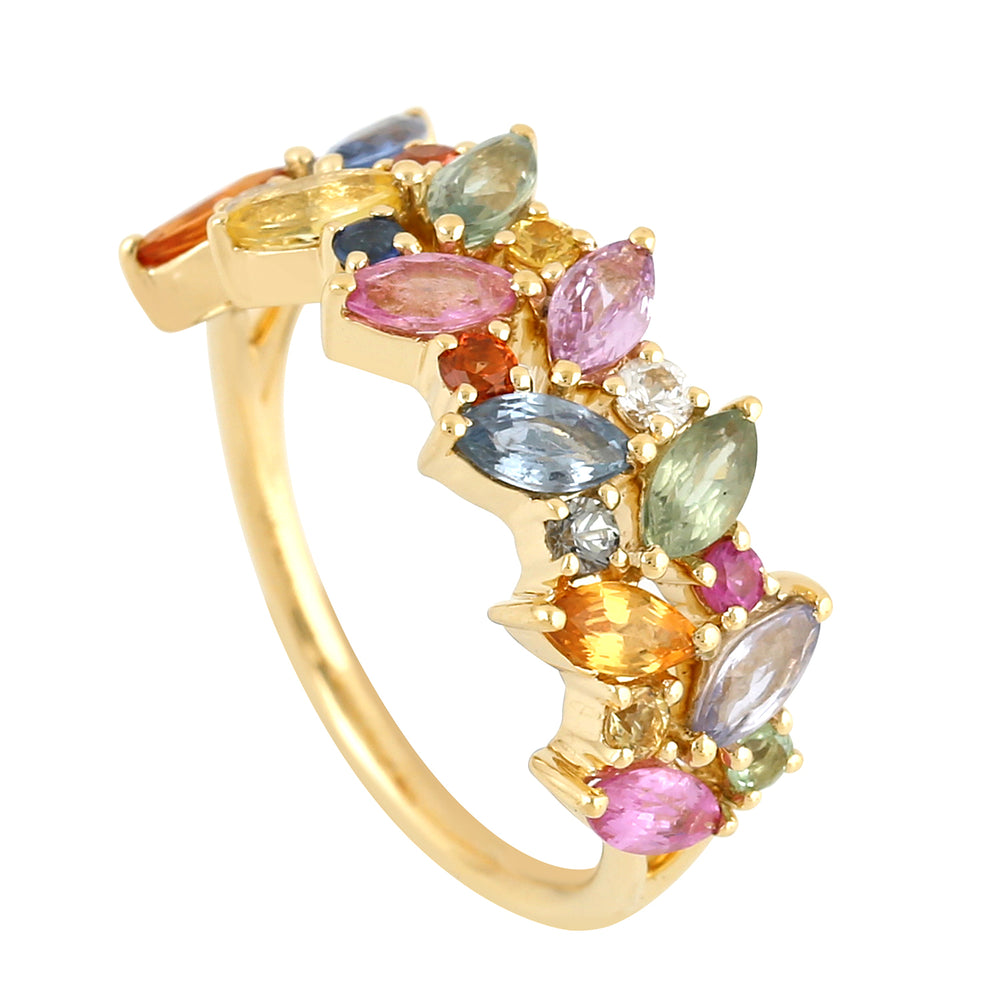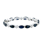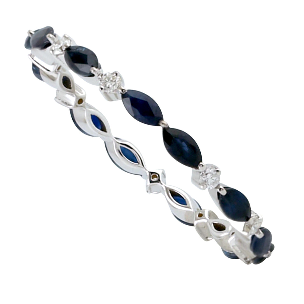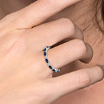 Marquise Blue Sapphire Prong Diamond Band Ring In 14K White Gold