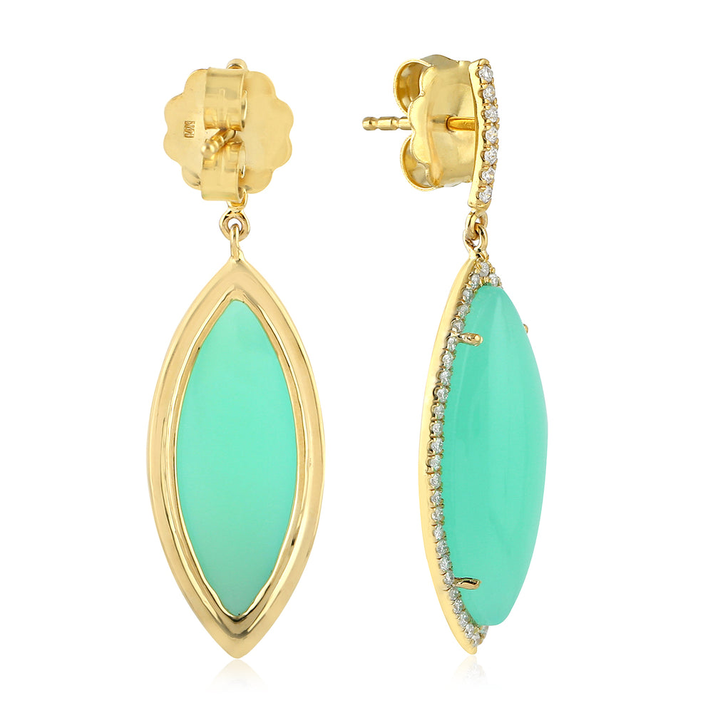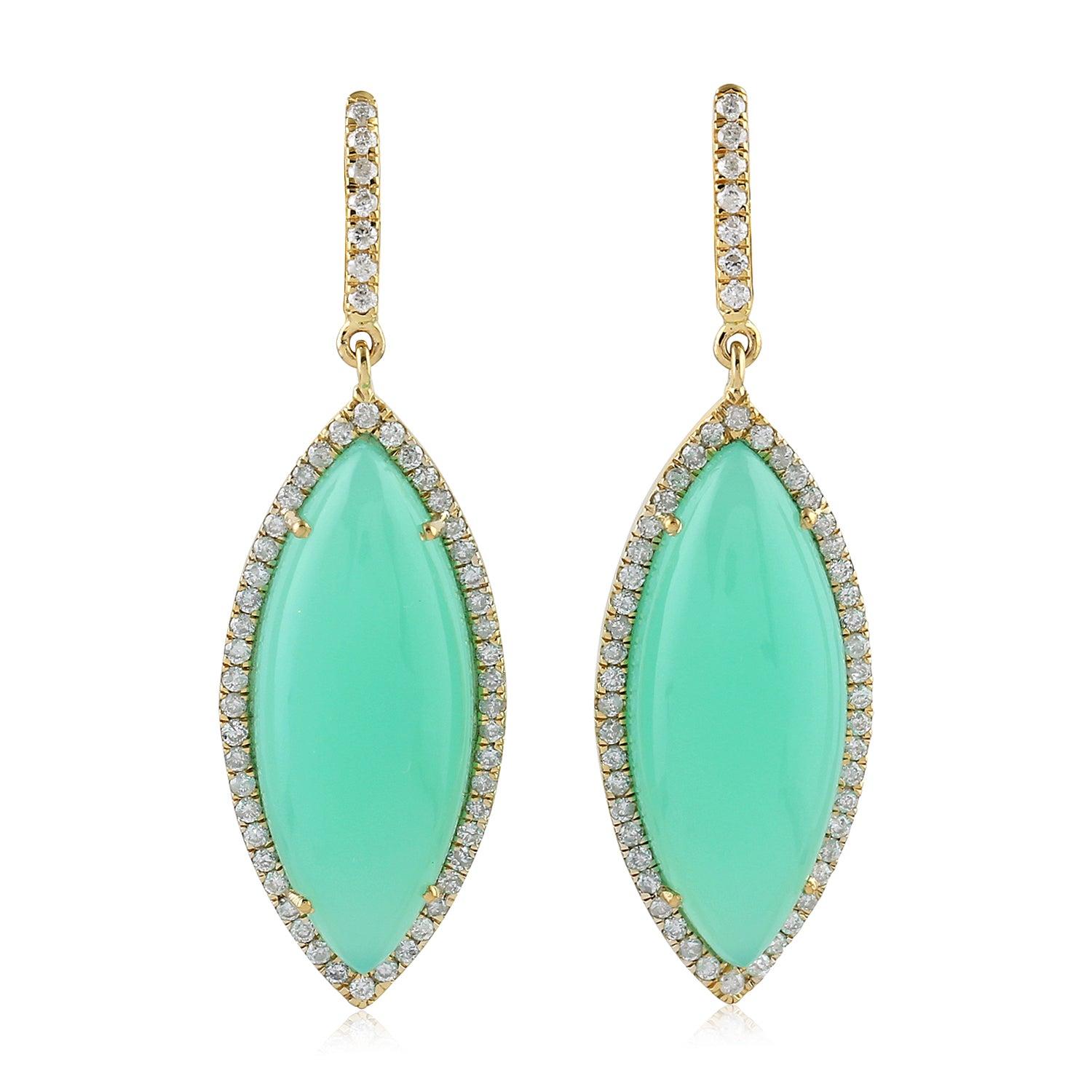 Marquise Chrysoprase Pave Diamond Dangle Earrings In 14K Yellow Gold