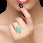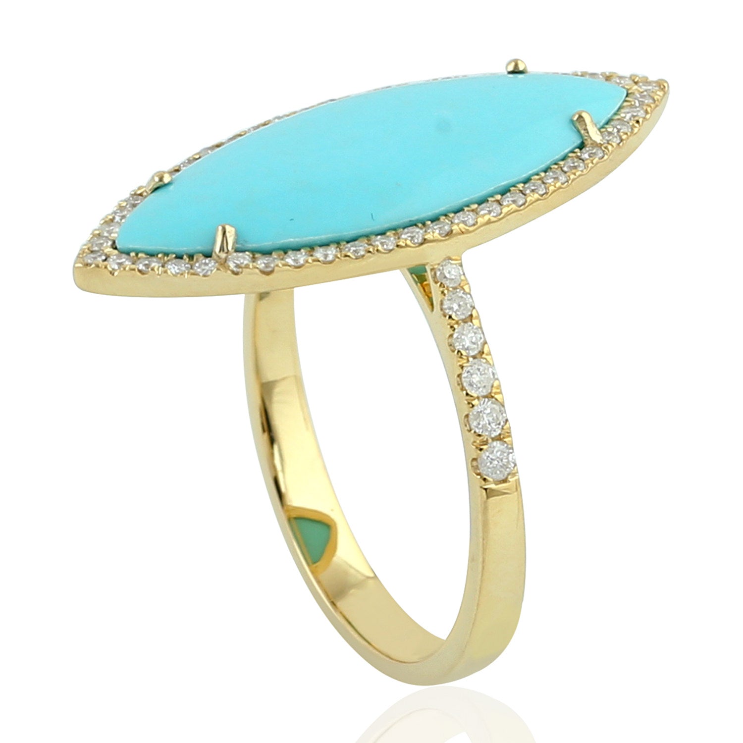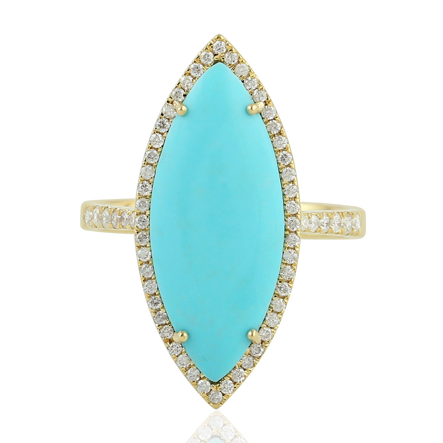Marquise Cut Turquoise Gemstone Pave Diamond Long Ring In Gold