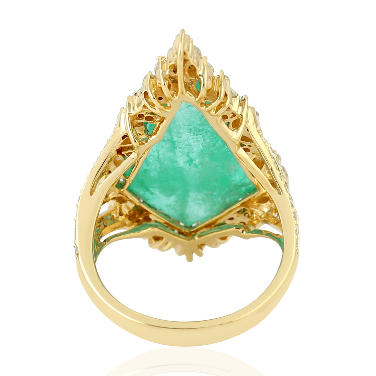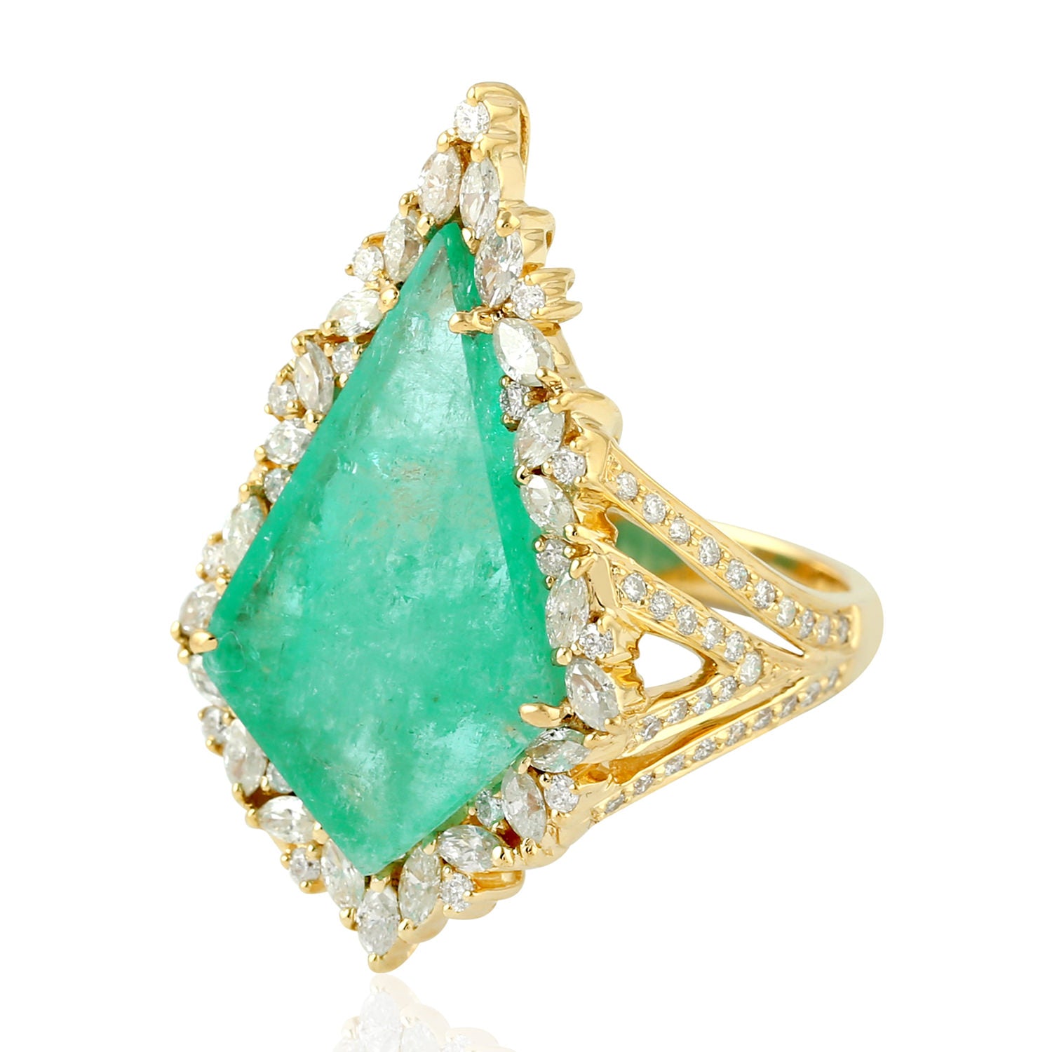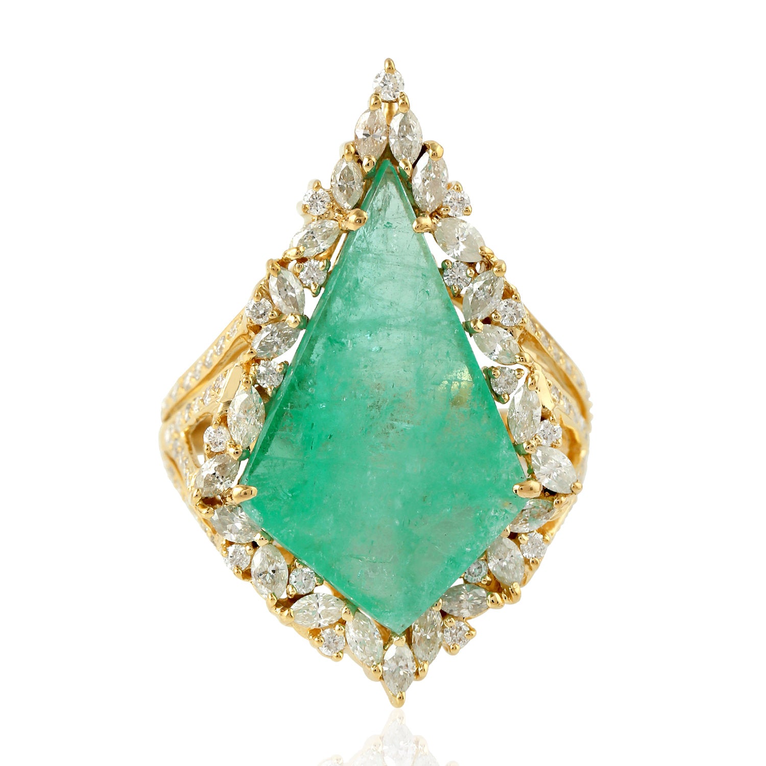 Marquise Diamond & Kite Cut Emerald Cocktail Ring in 18K Yellow Gold – Geometric Jewelry