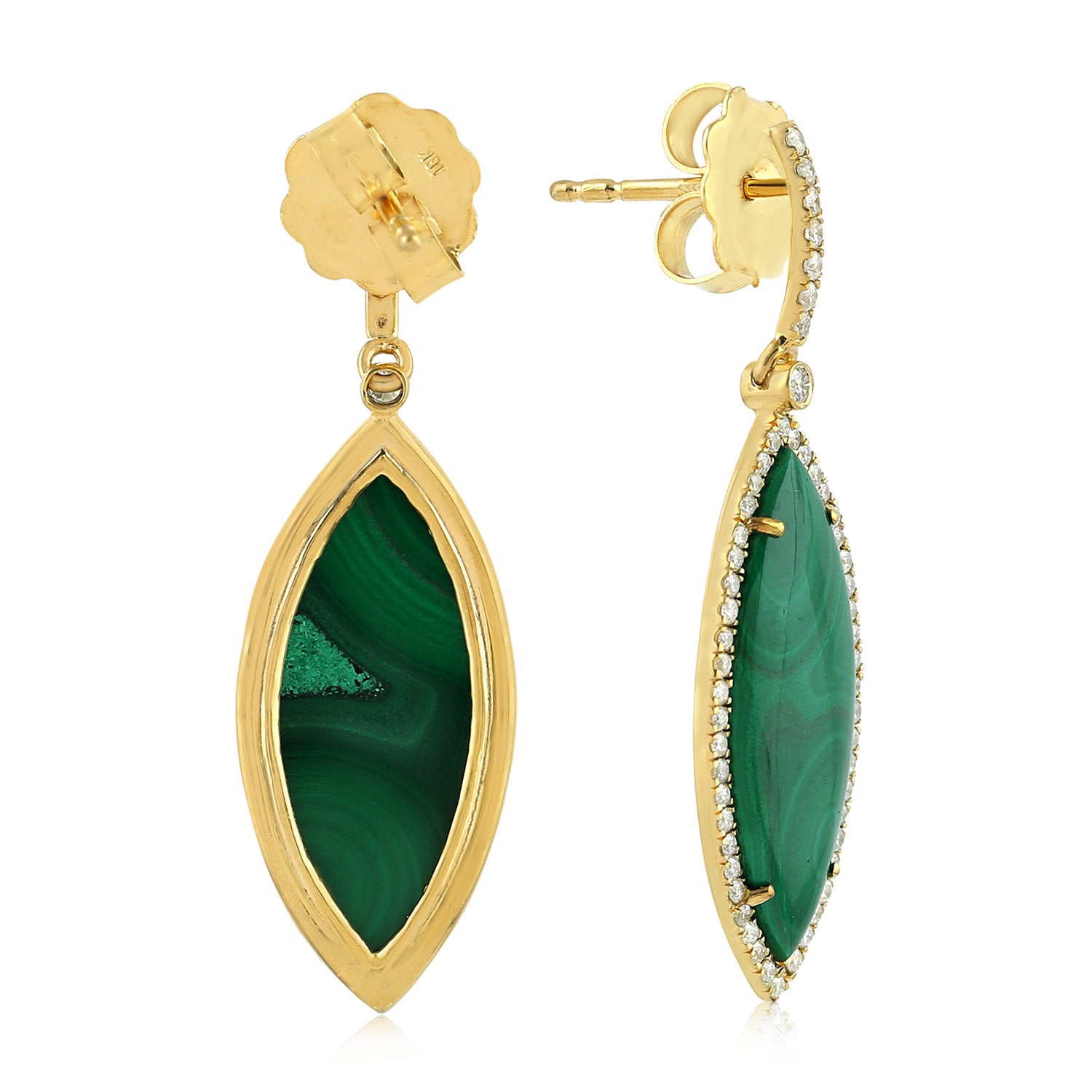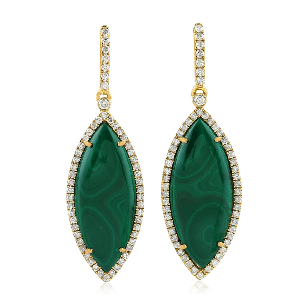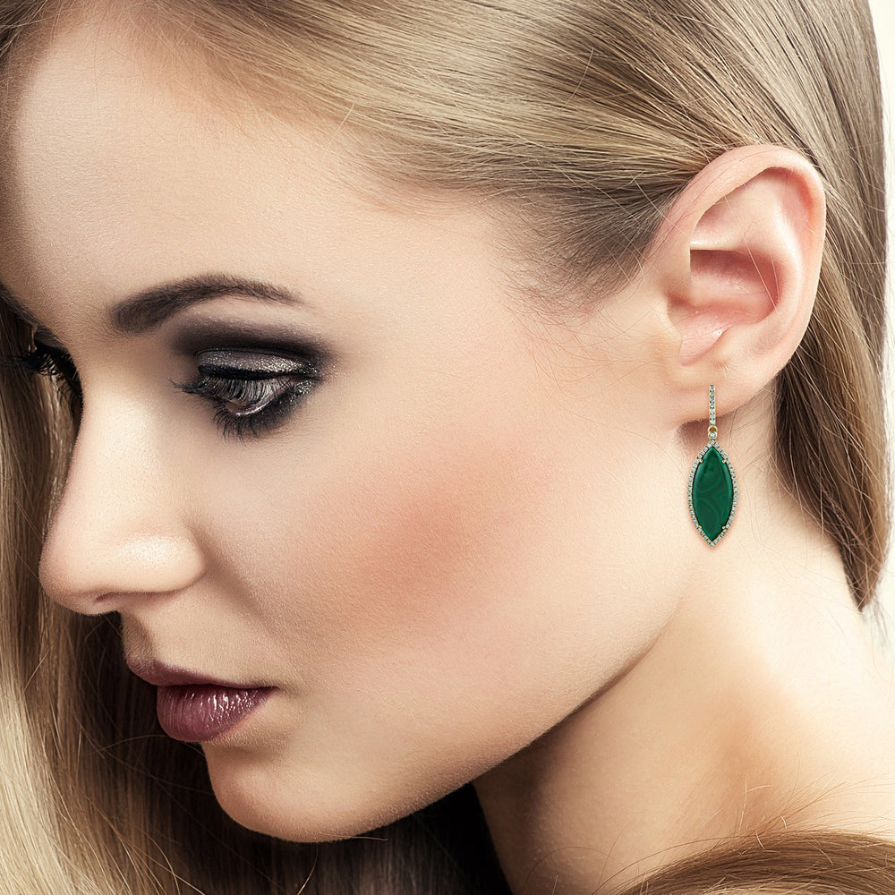 Marquise Malachite Gemstone Pave Diamond Dangler In Gold For Women's