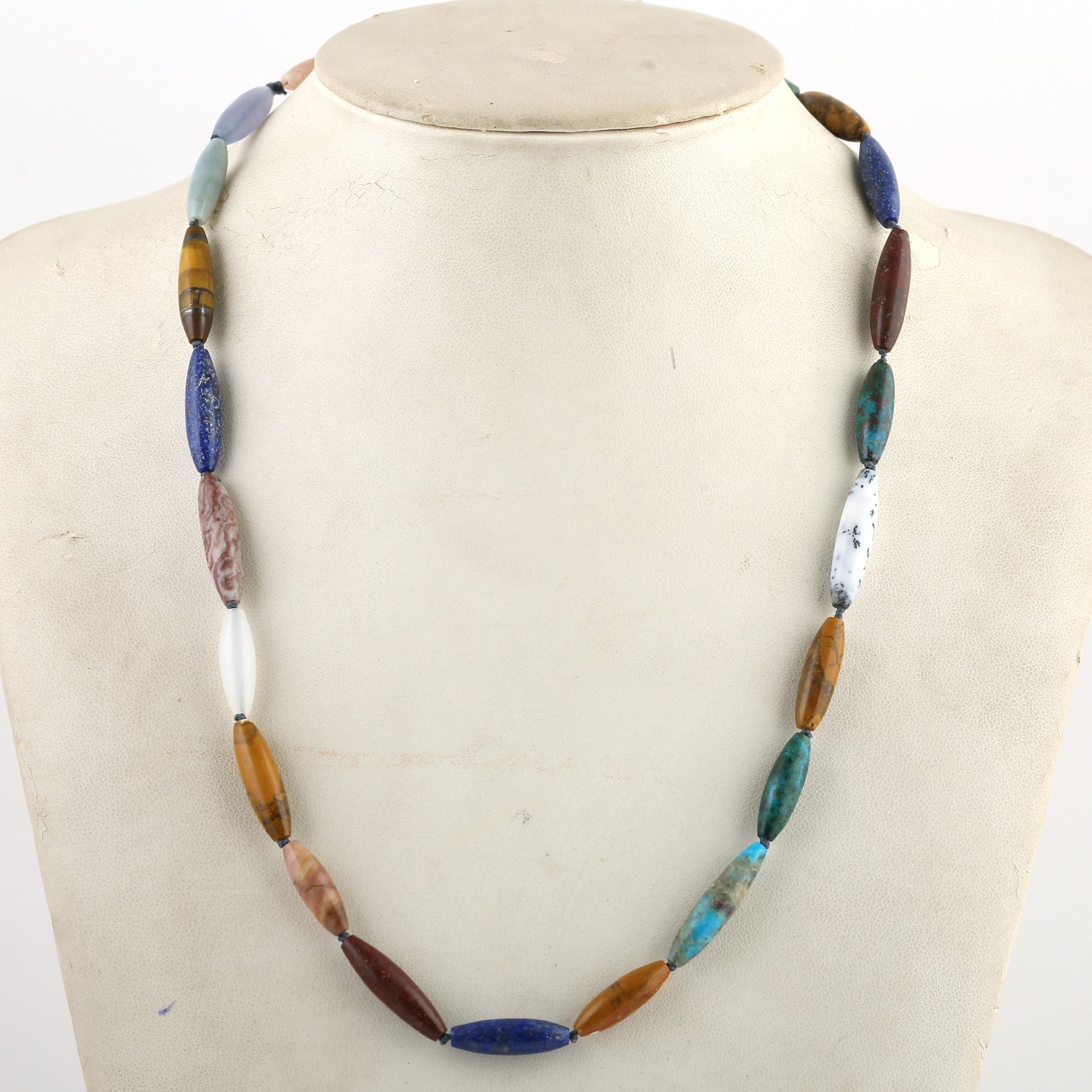 • Mix Gemstone In 18k Solid Yellow Gold Necklace For Women Jewelry