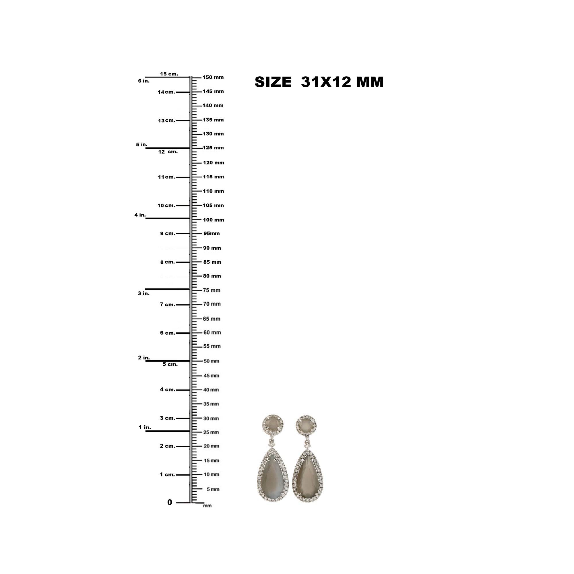 Moonstone Gemstone Pave Diamond Teardrop Dangling Earrings in 18k White Gold – Elegant Jewelry for Her
