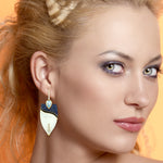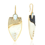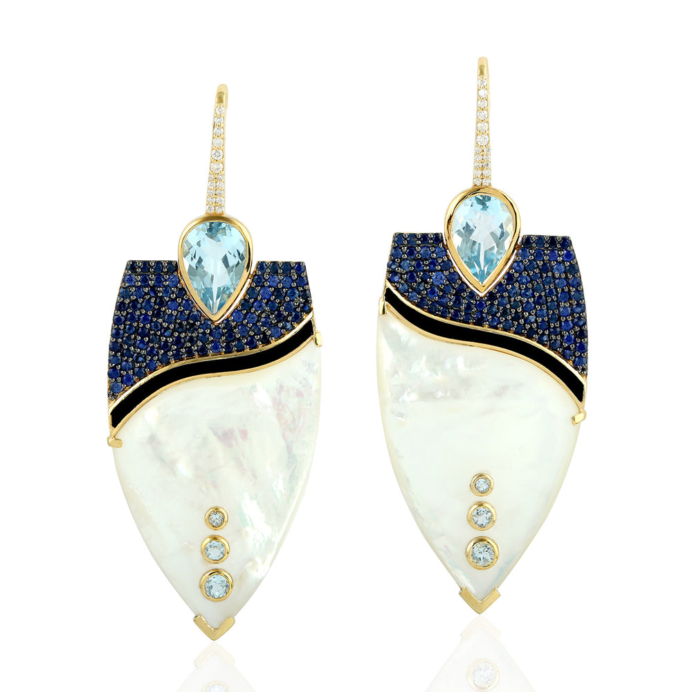 MOP Pear Cut Blue Topaz Pave Blue Sapphire Gemstone Diamond In Gold Danglers