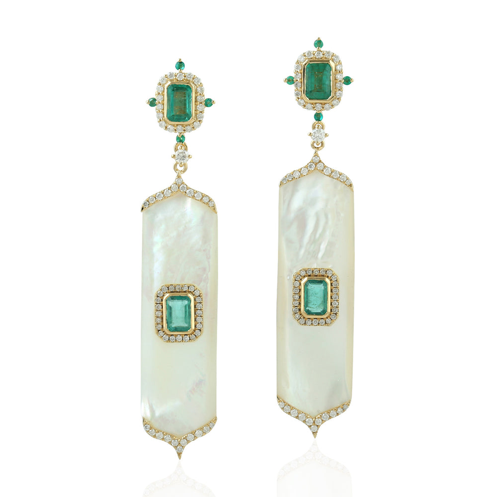 Emerald Prong Mother Of Pearl Gemstone Pave Diamond In Gold Dangler