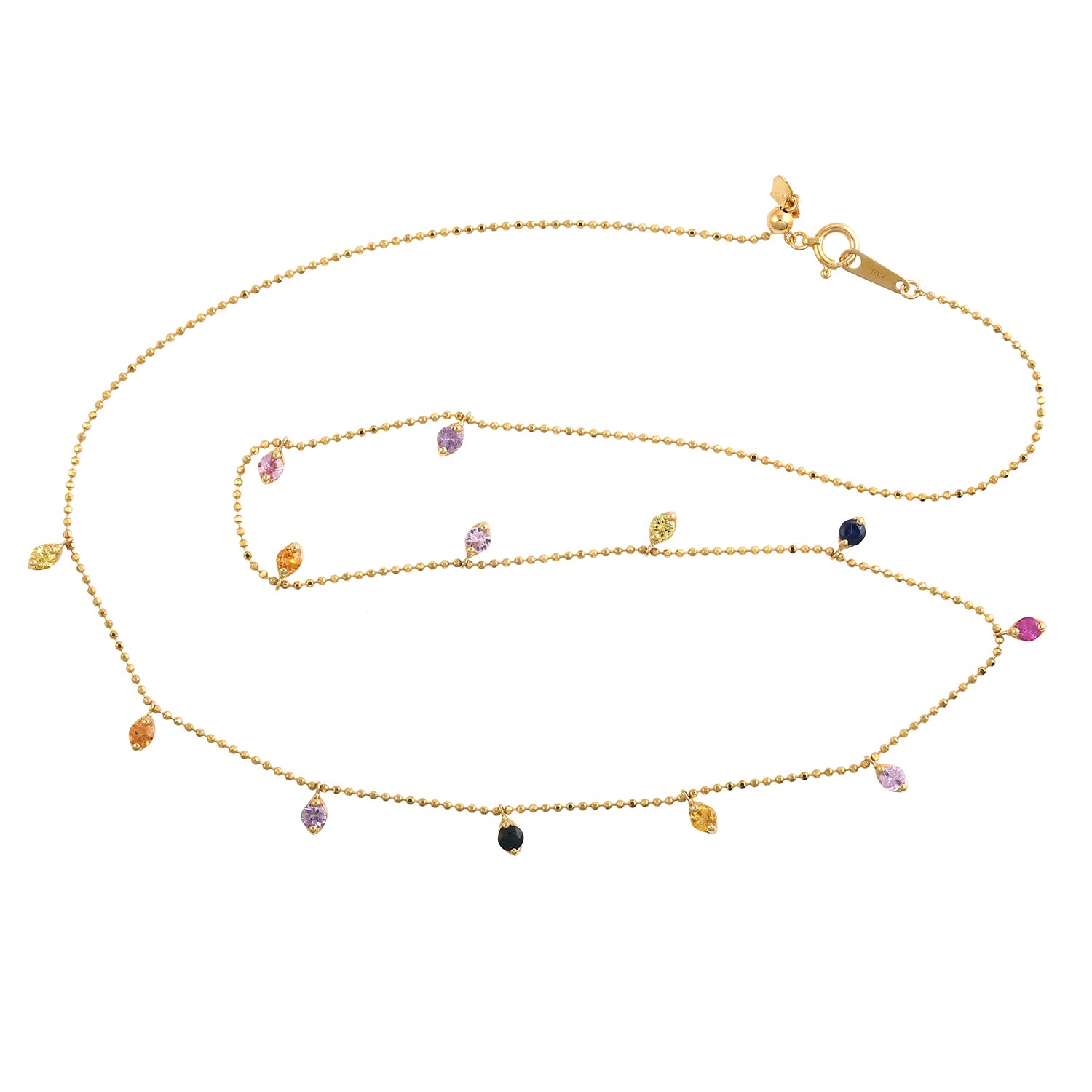 Multi Sapphire Gemstone In 18K Yellow Gold Beaded Chain Princess Necklace