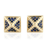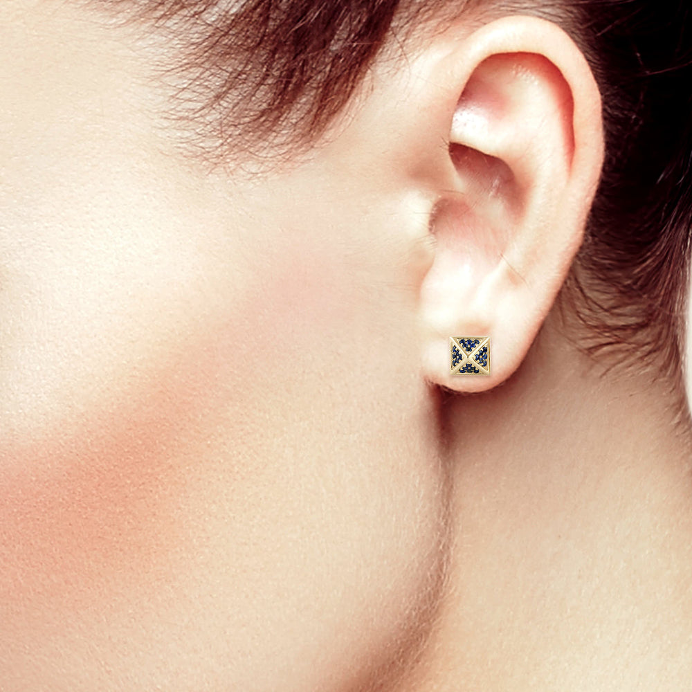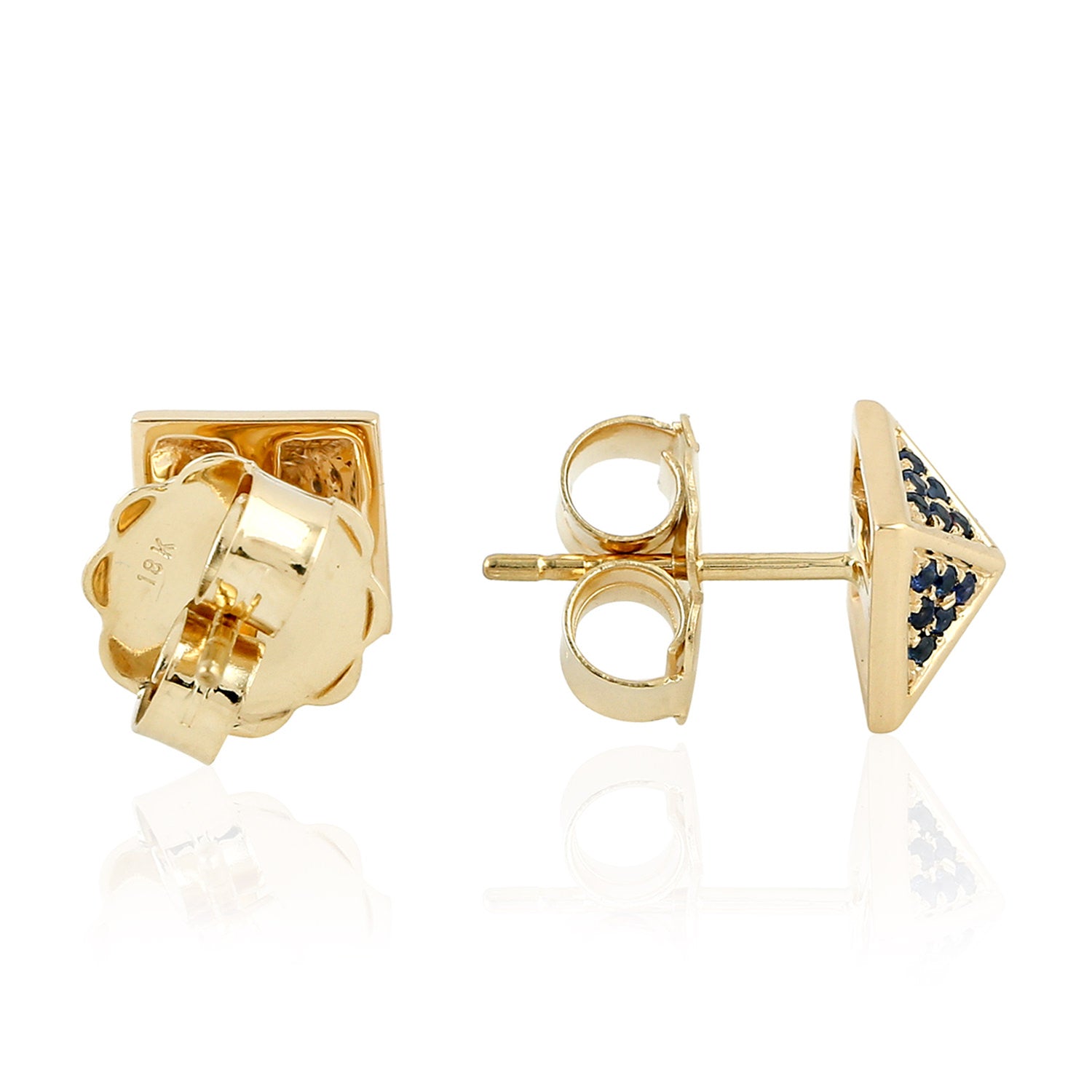• Blue Sapphire Gemstone In 18k Yellow Gold Pyramid Stud Earrings For Women