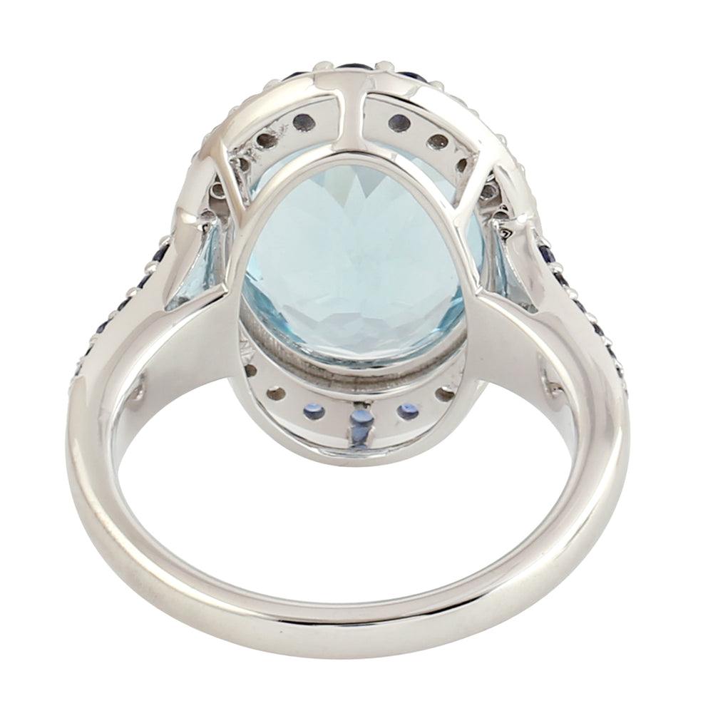 Oval Cut Aquamarine Prong Blue Sapphire Pave Diamond Solitaire Ring in White Gold
