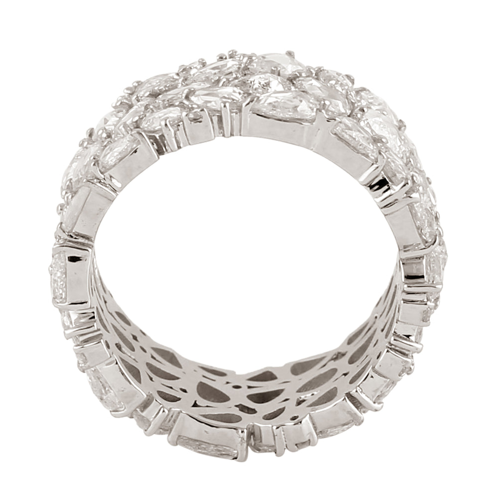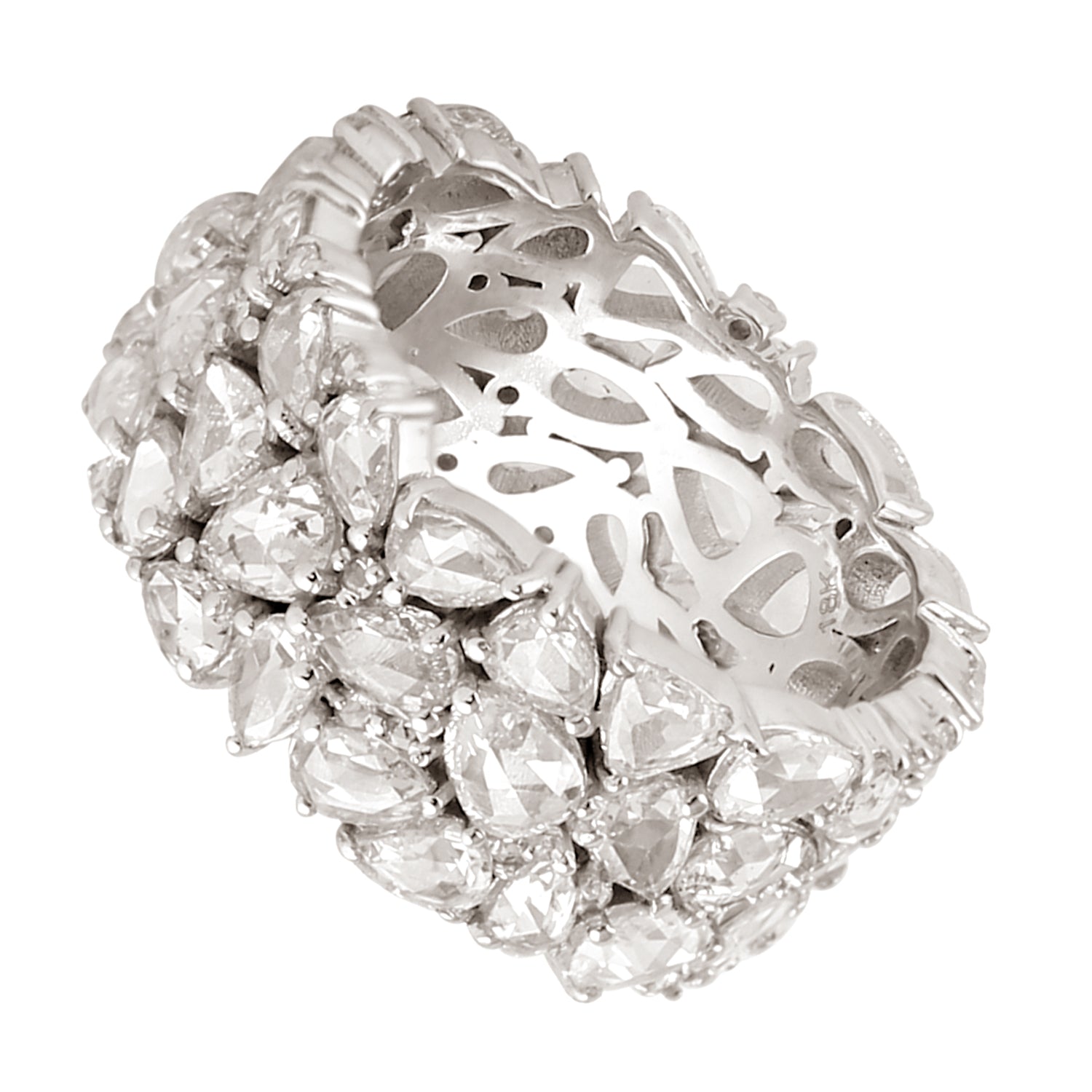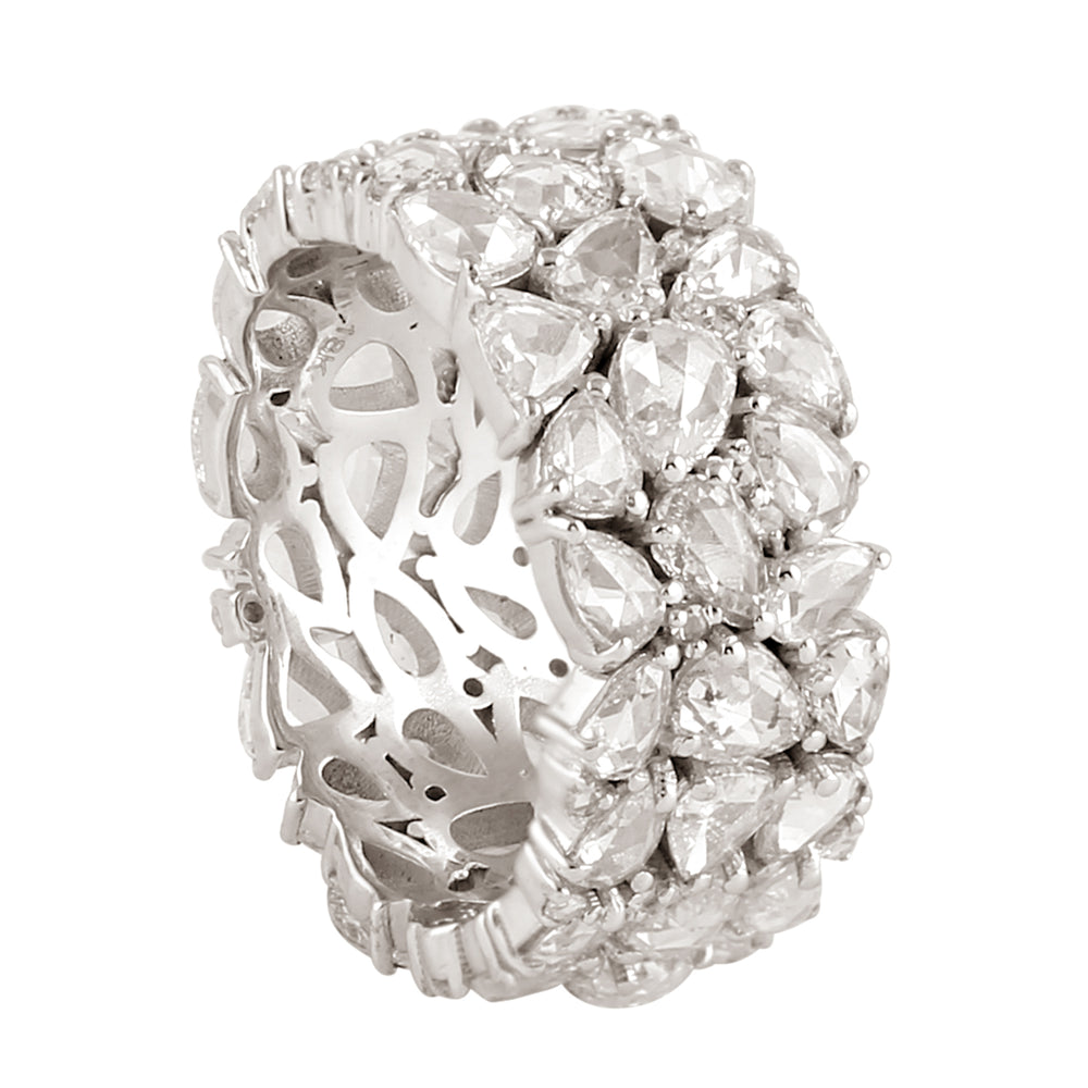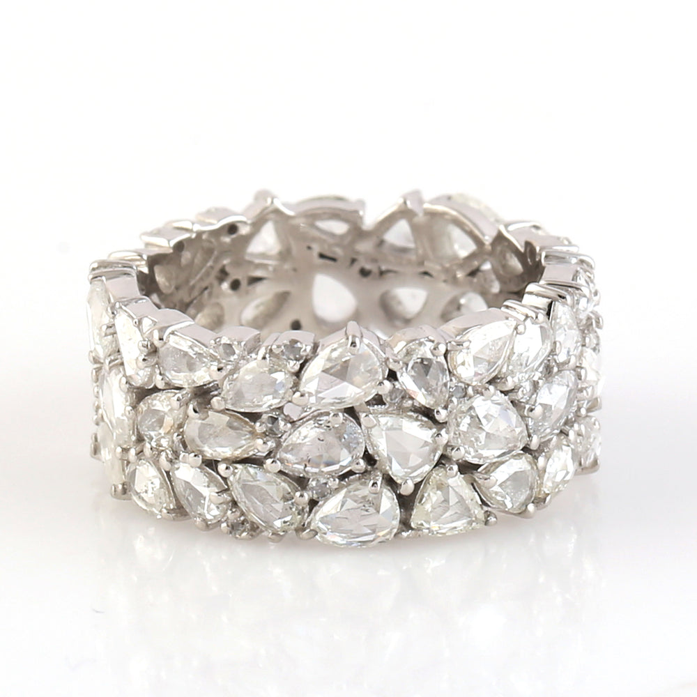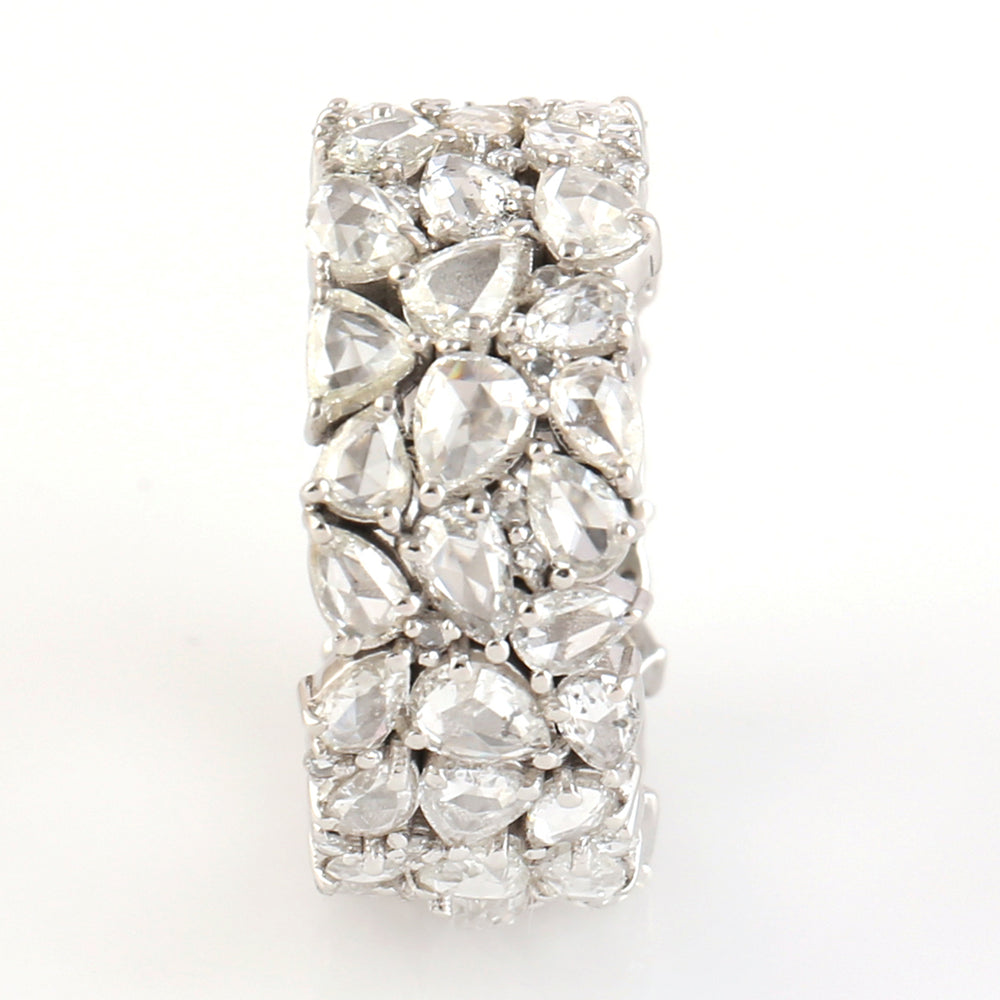 Natural Rose Cut Diamond Wide Band Ring in 18k White Gold – Elegant Statement Jewelry for Her