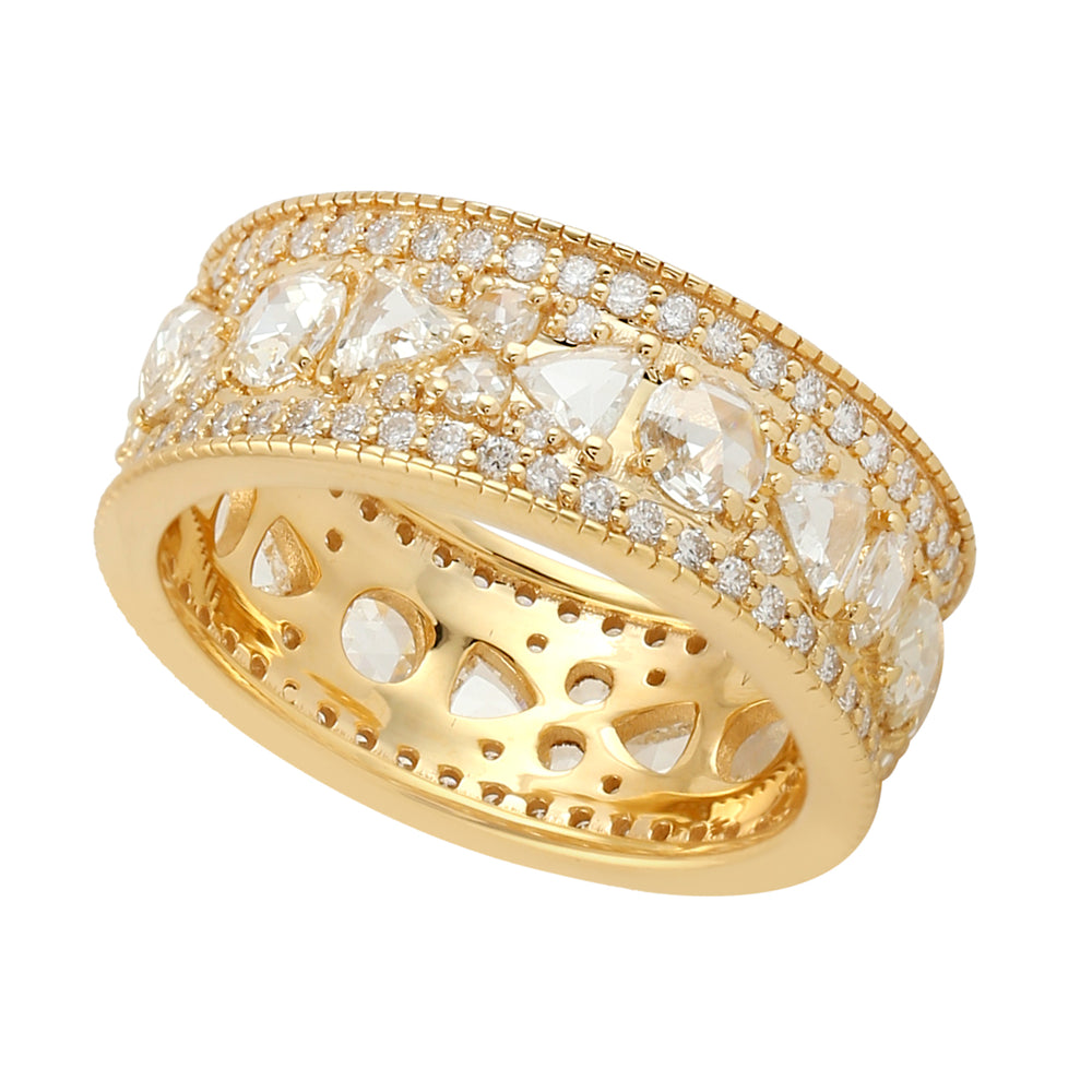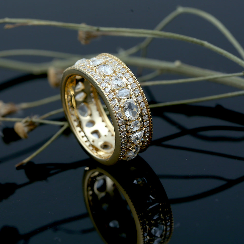 Natural Rose Cut Diamond Anniversary Band Ring in 18K Yellow Gold – Elegant Stackable Jewelry