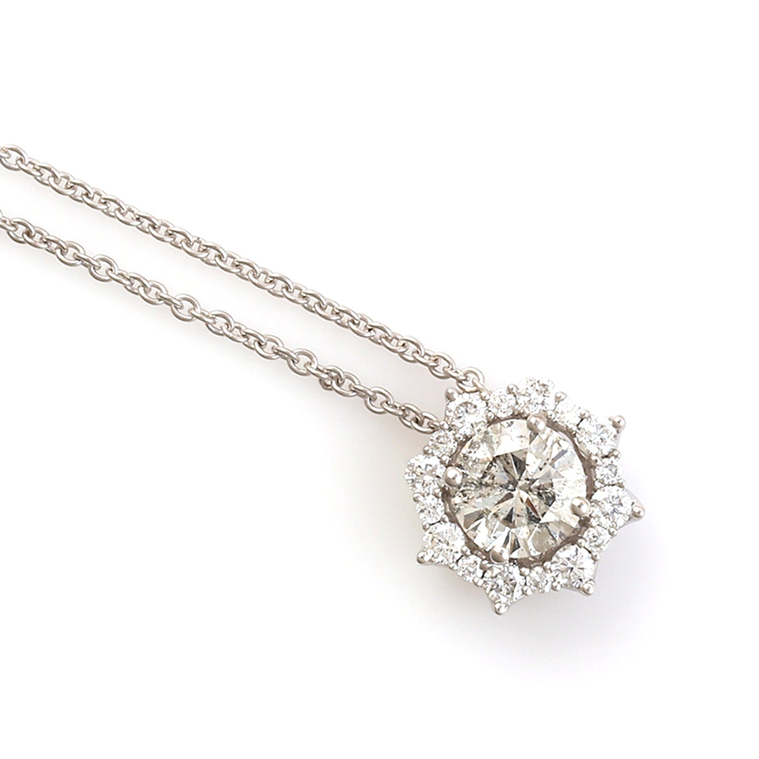 Natural Diamond Prong Set Princess Necklace In 14K White Gold