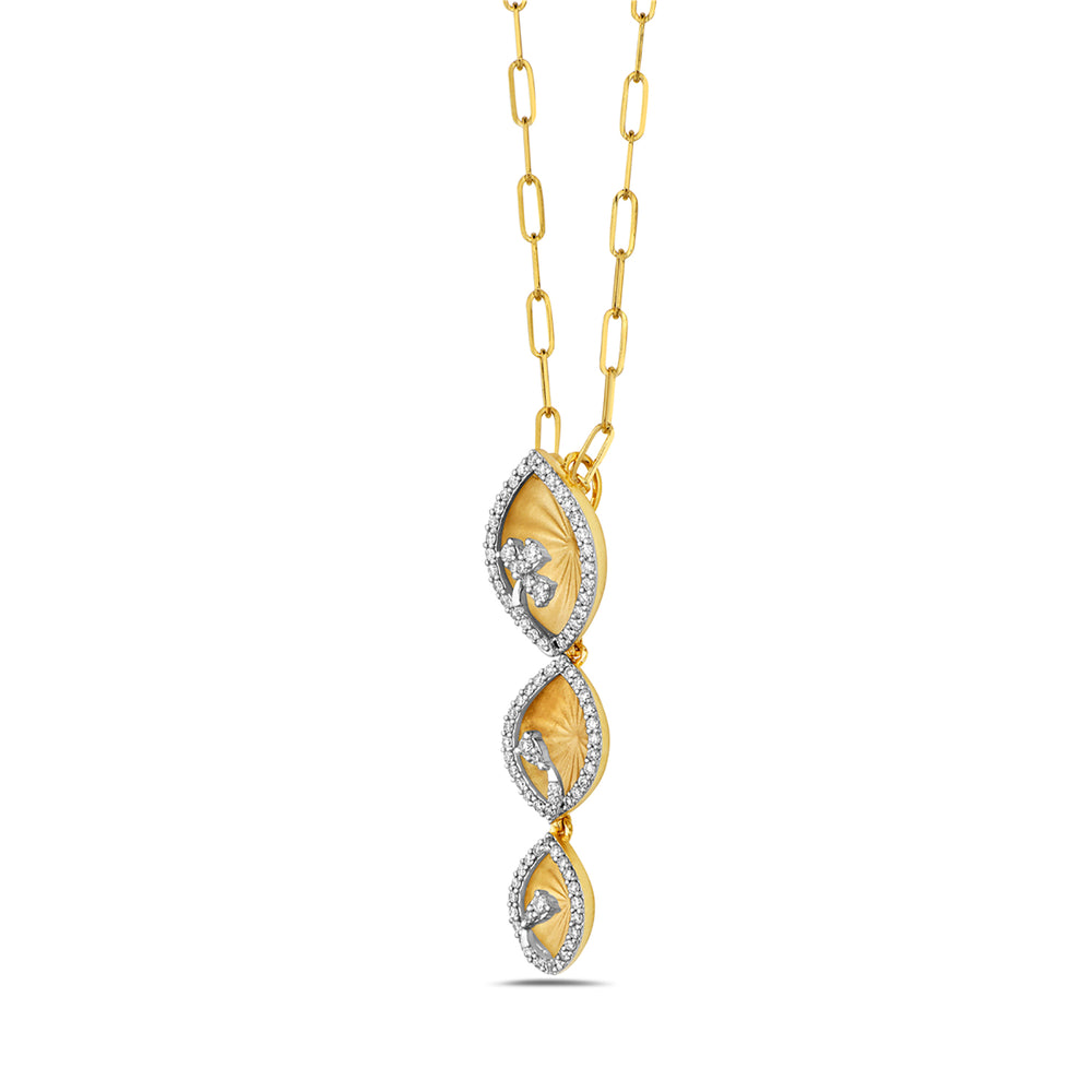 Natural Diamond Three Tier Wedding Pendant In 14K Yellow Gold For her