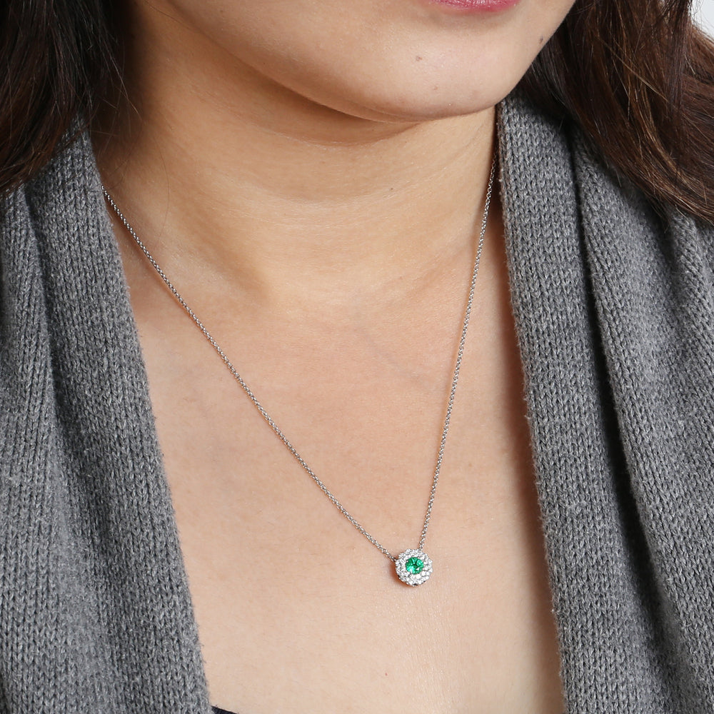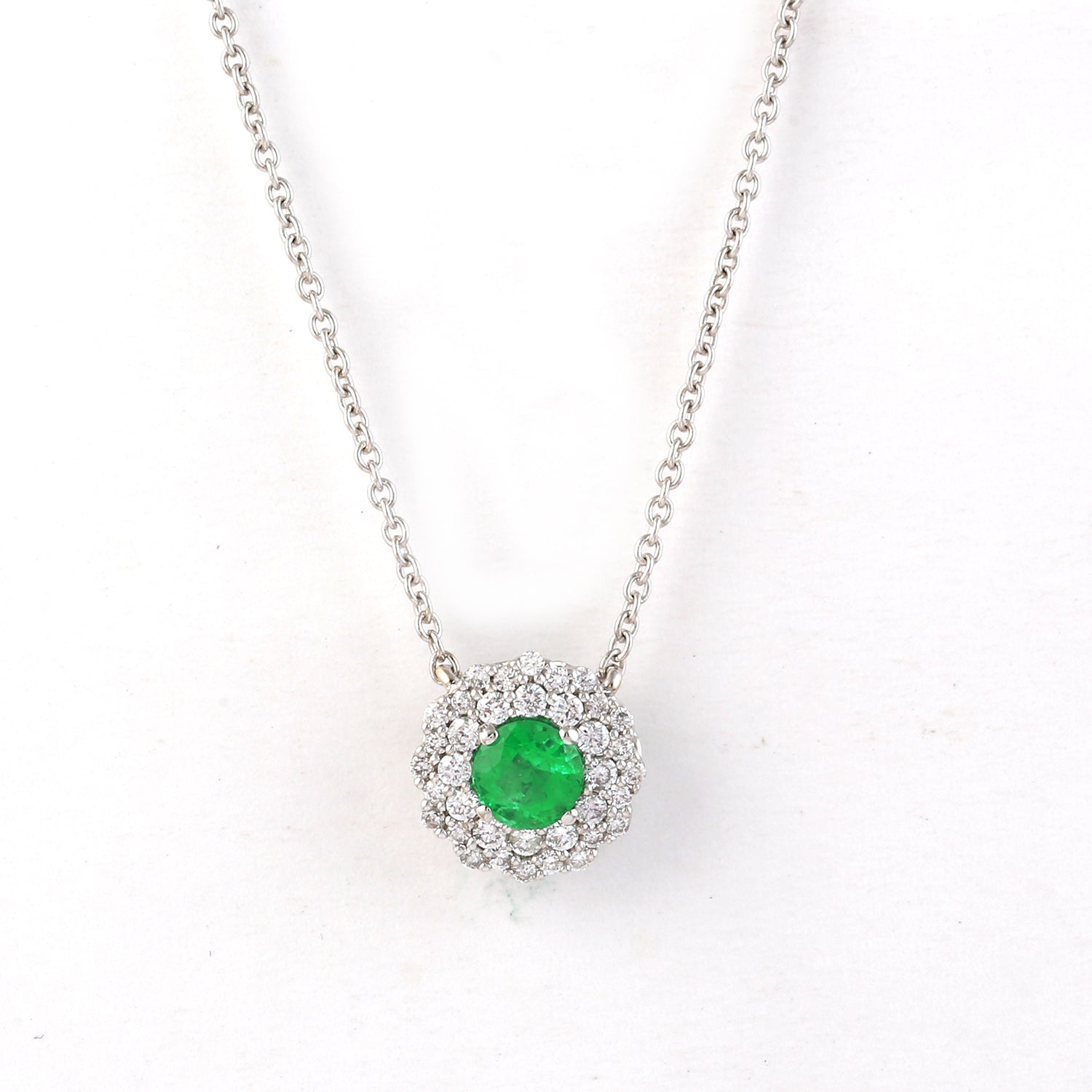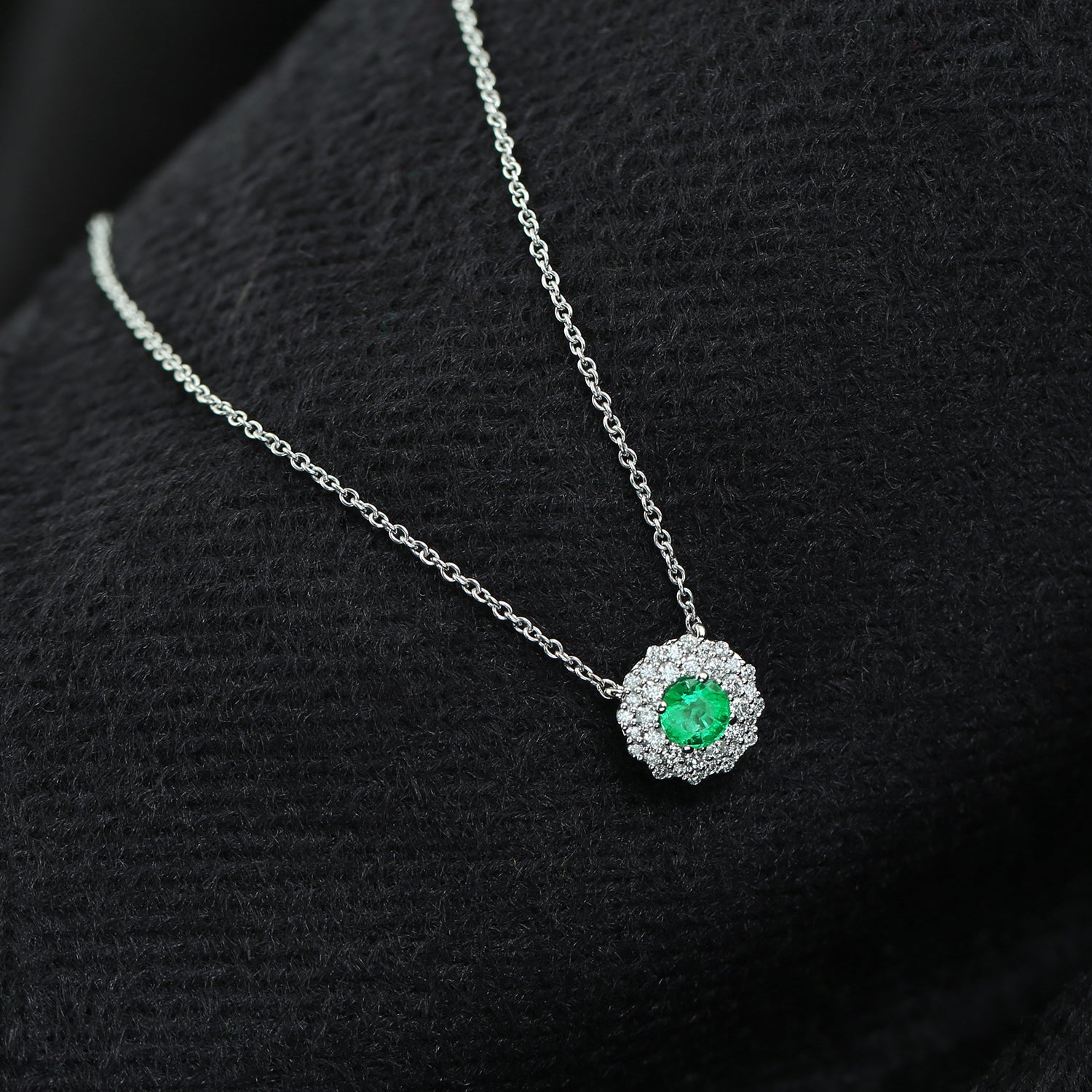14K White Gold Emerald Double Halo Diamond Choker Necklace for Women