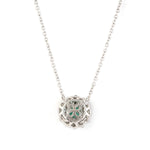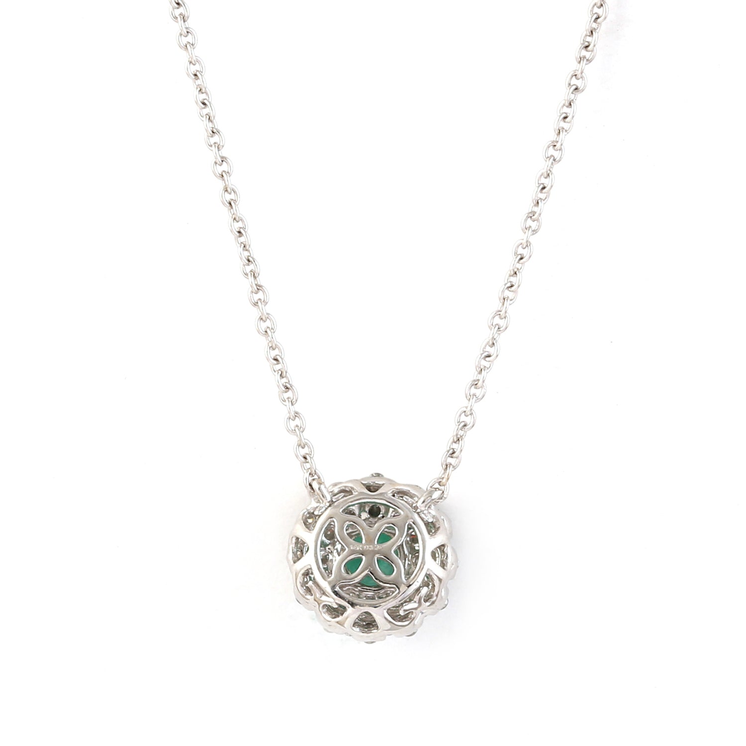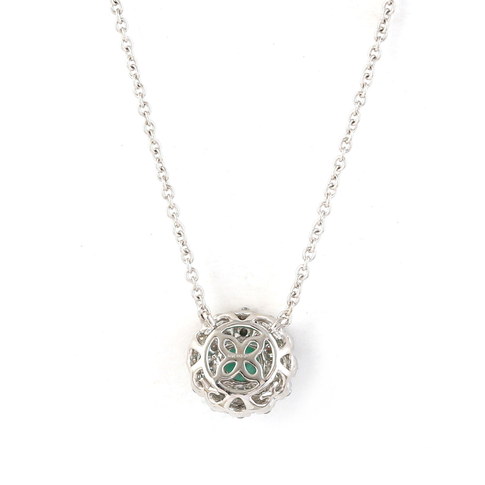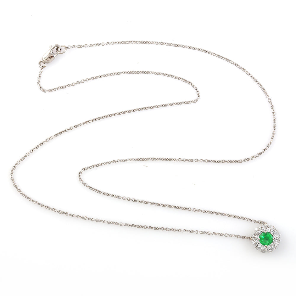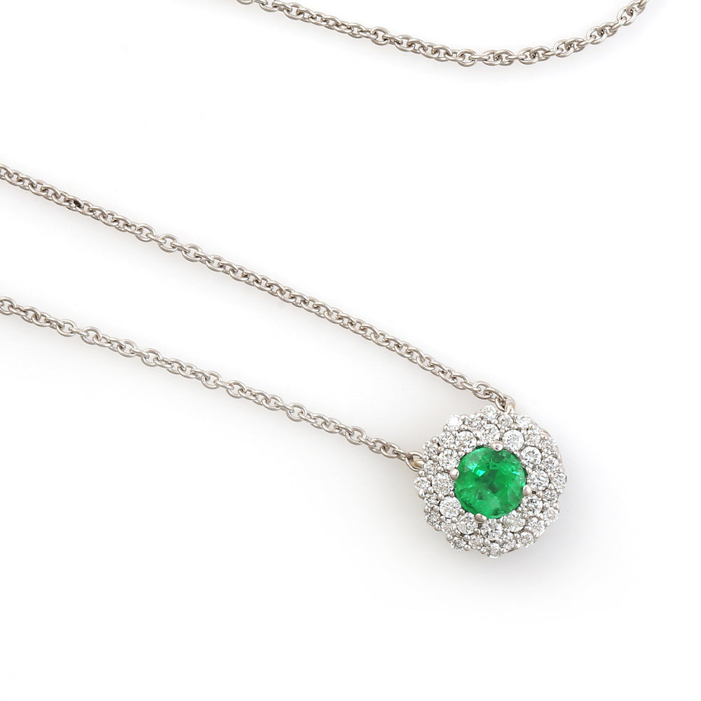 14K White Gold Emerald Double Halo Diamond Choker Necklace for Women