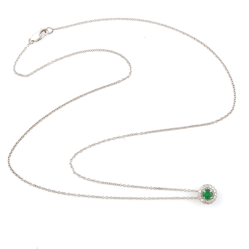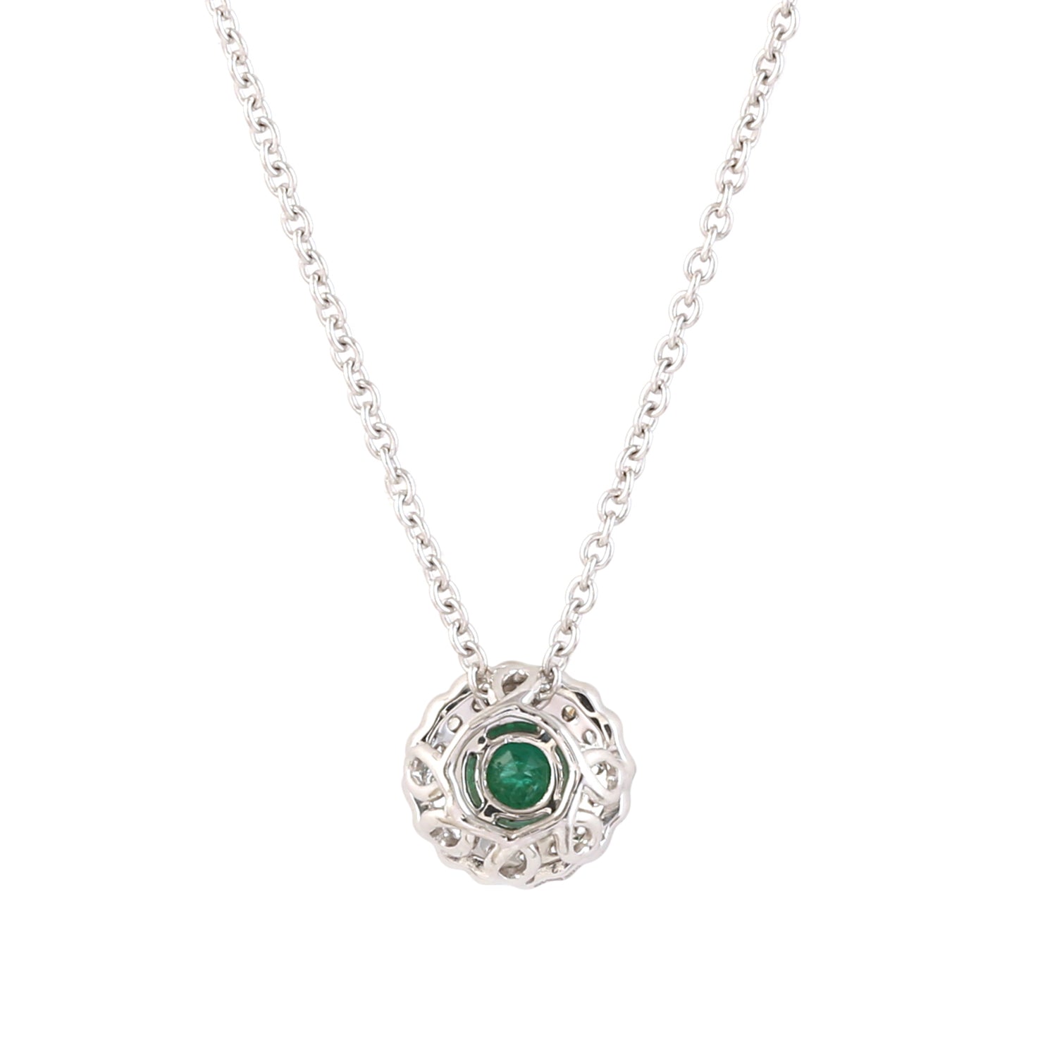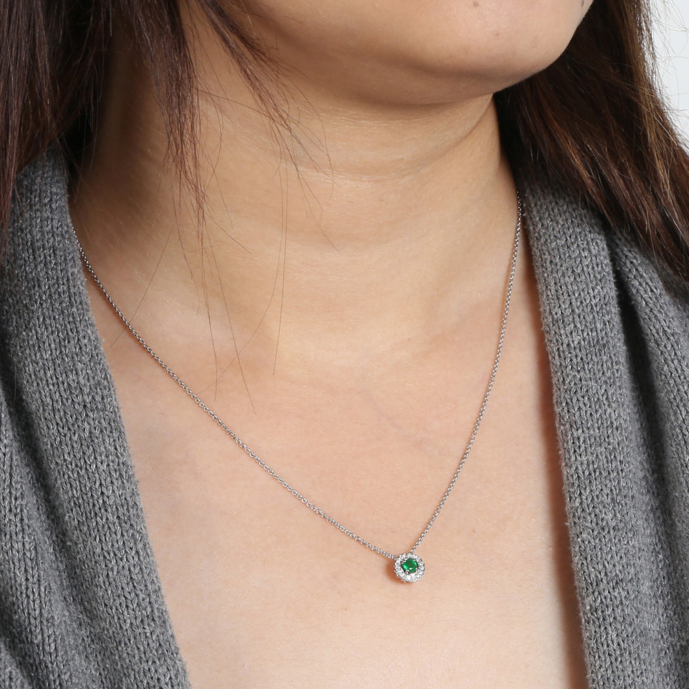 Emerald Pave Diamond Halo Chain Princess Necklace In 14k White Gold