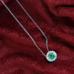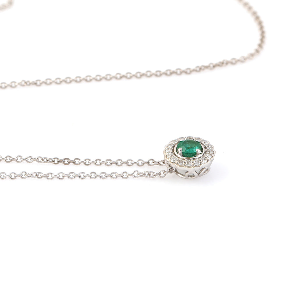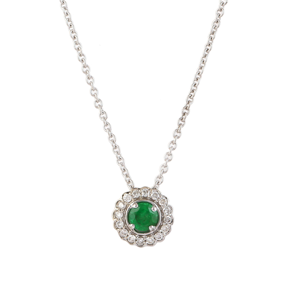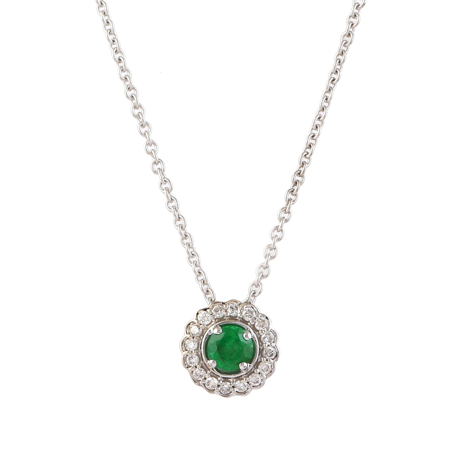 Emerald Pave Diamond Halo Chain Princess Necklace In 14k White Gold