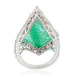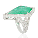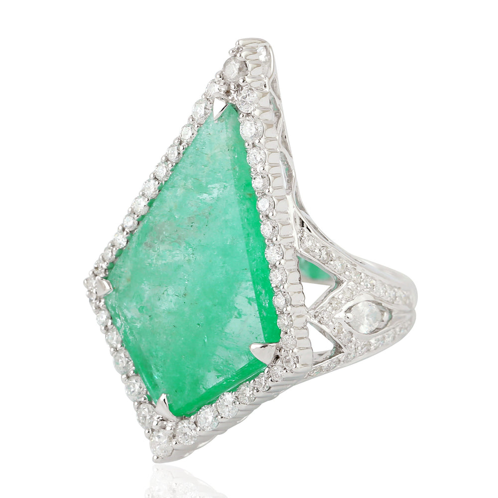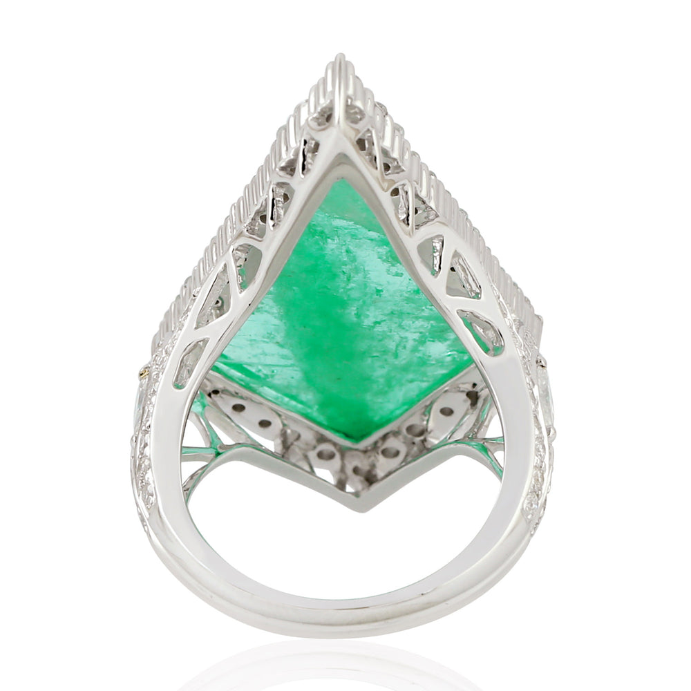 Kite Cut Emerald Gemstone Prong Diamond In White Gold Beautiful Ring
