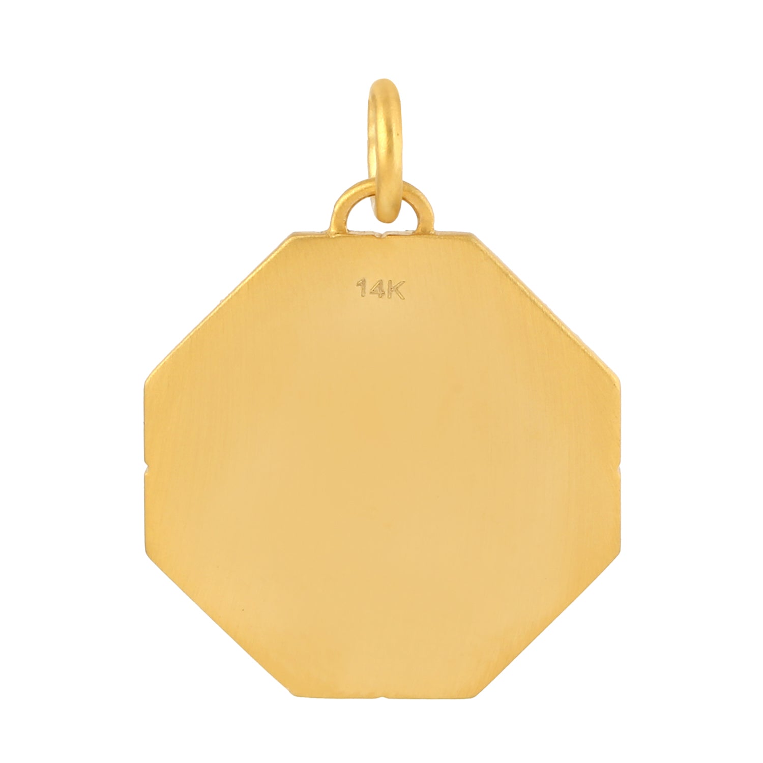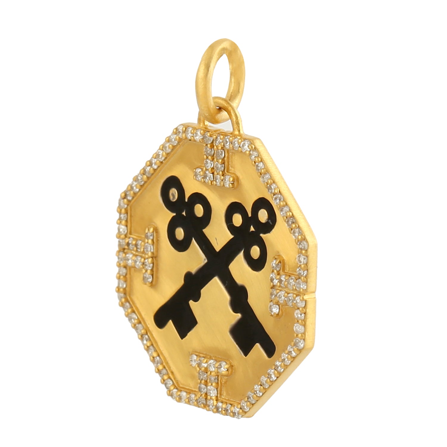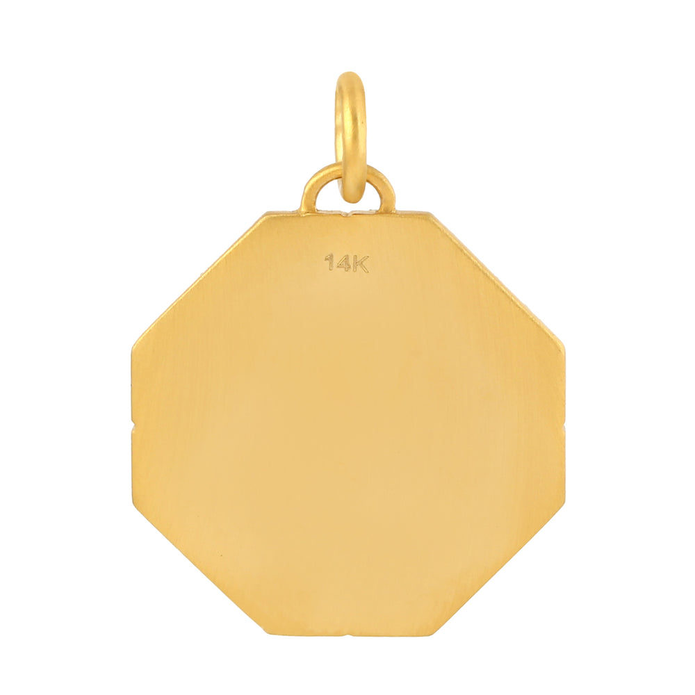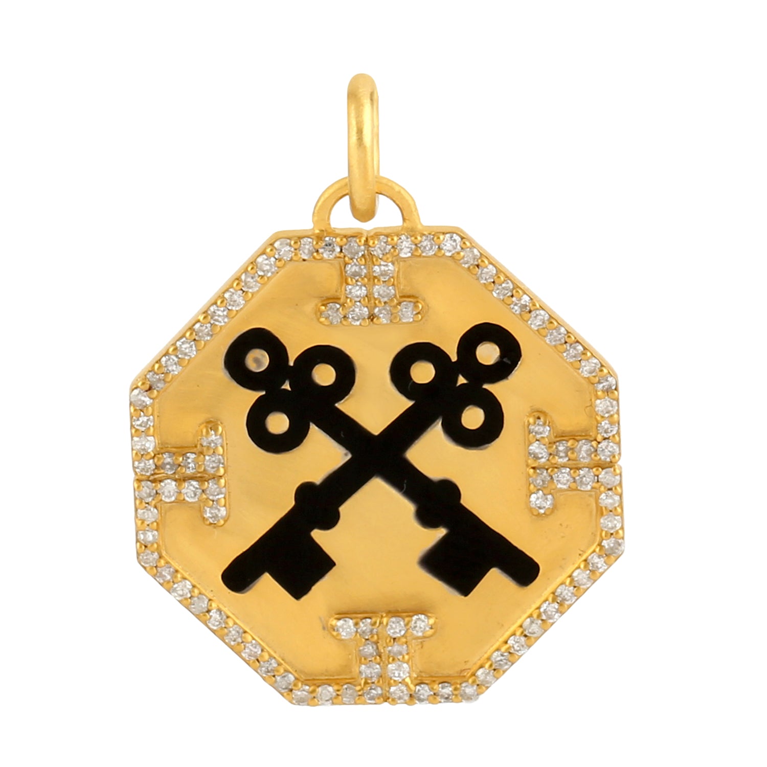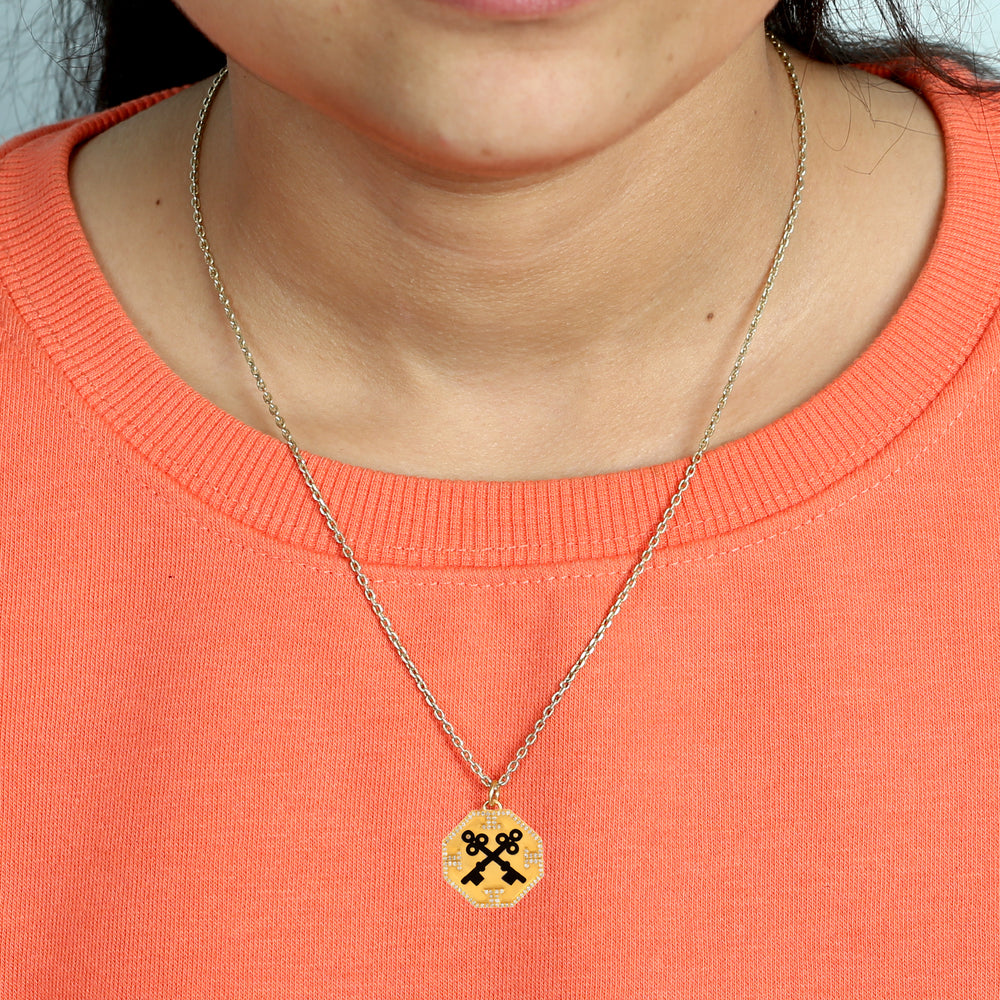 Micro Pave Diamond Enamel Lock Key Design Octagon Pendant In Yellow Gold