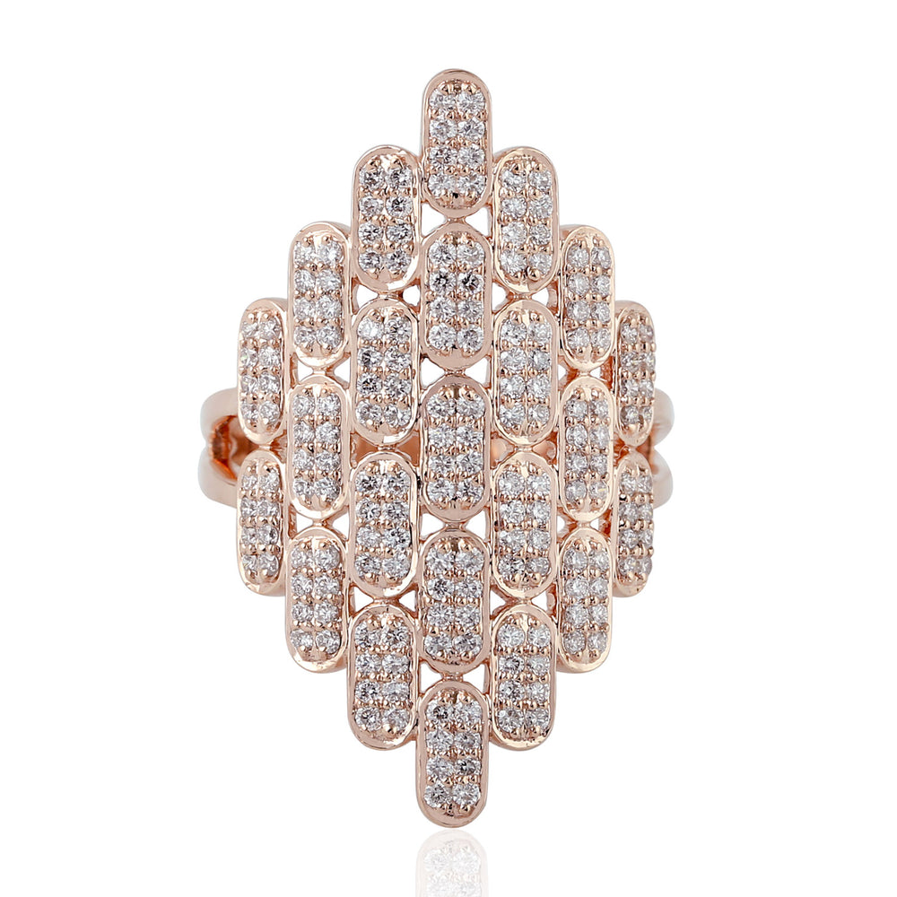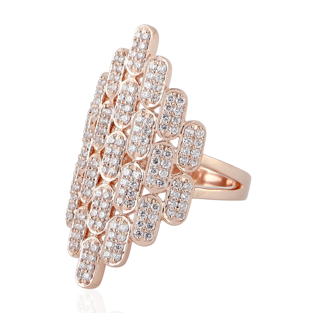 Micro Pave Diamond Long Ring In 18k Rose Gold Wedding For Women