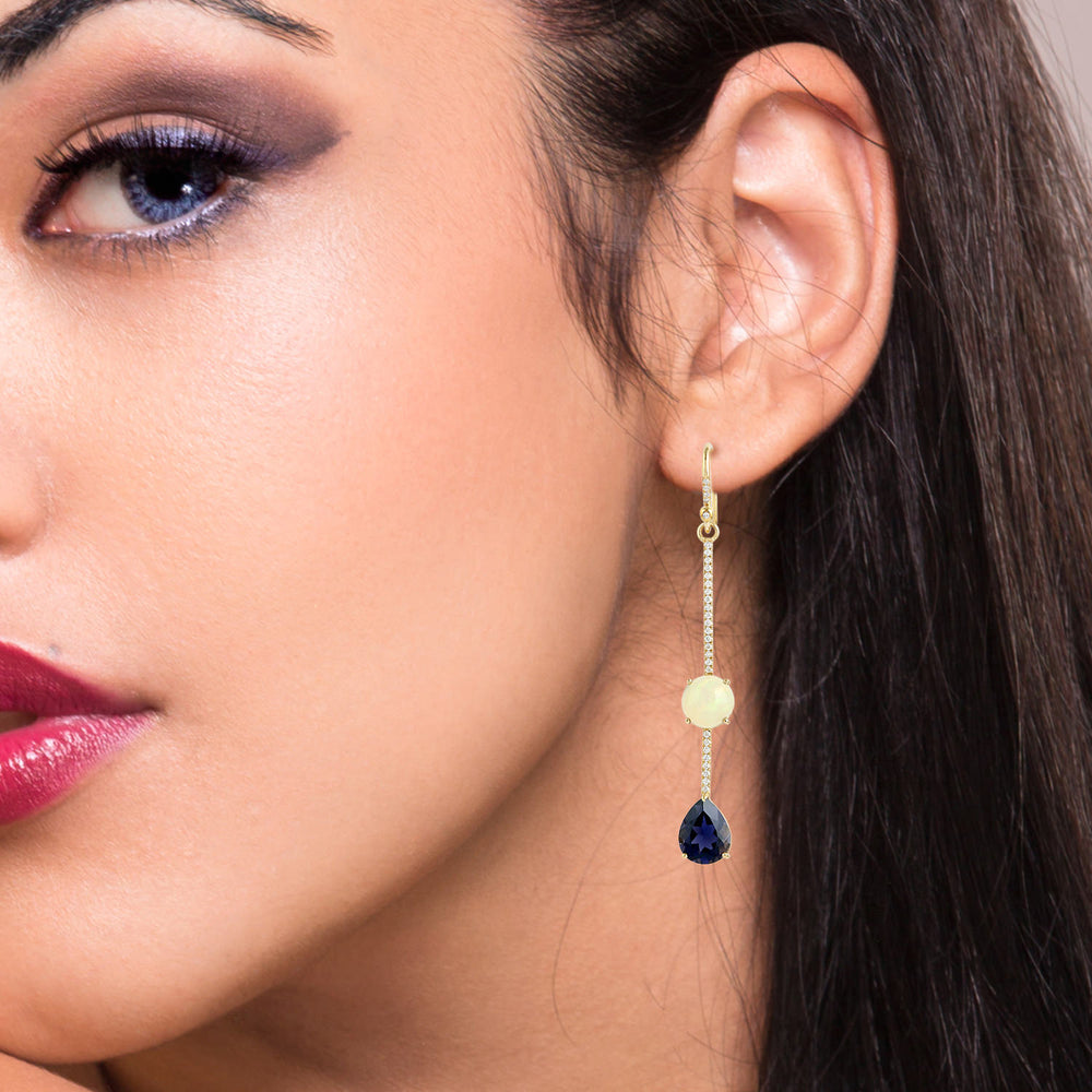 Multi-Gemstone Diamond Accent Earrings in Gold – Opal & Iolite