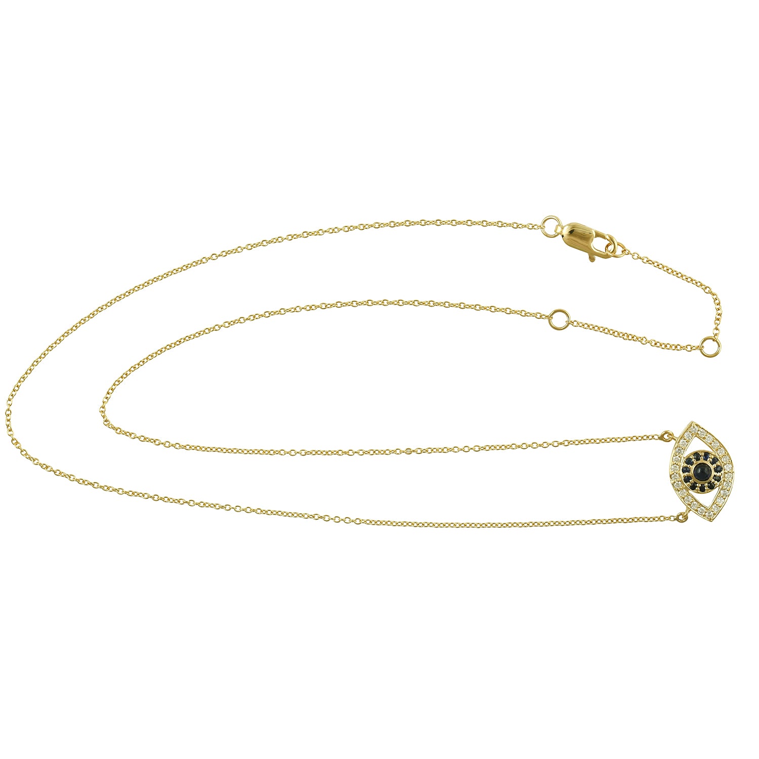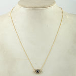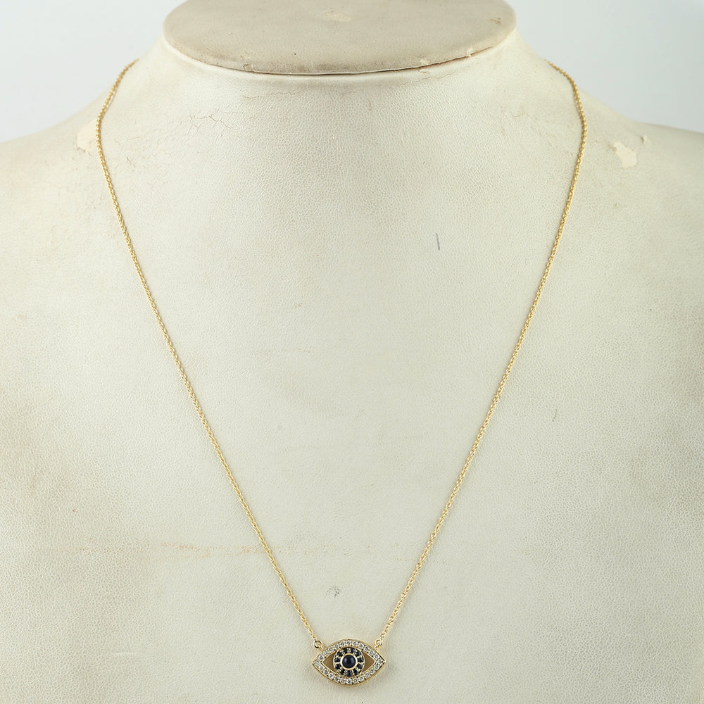 Natural Pave Blue Sapphire & Diamond Evil Eye Charm Necklace in 14K Yellow Gold