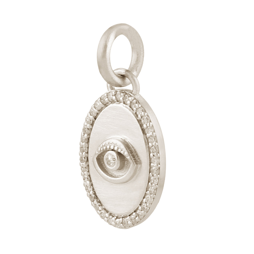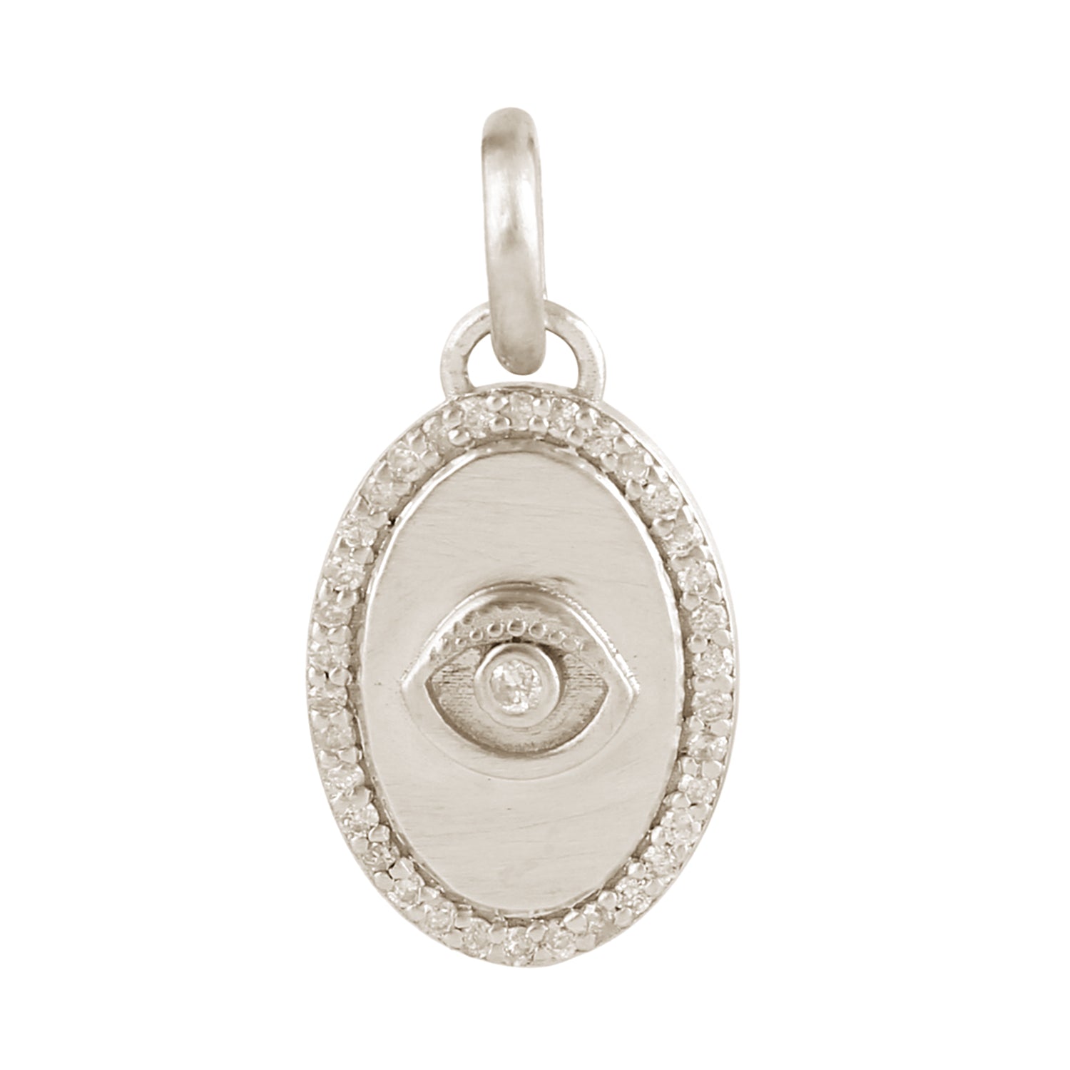 Pave Diamond In 14k White Gold Evil Eye Oval Pendant For Gifts