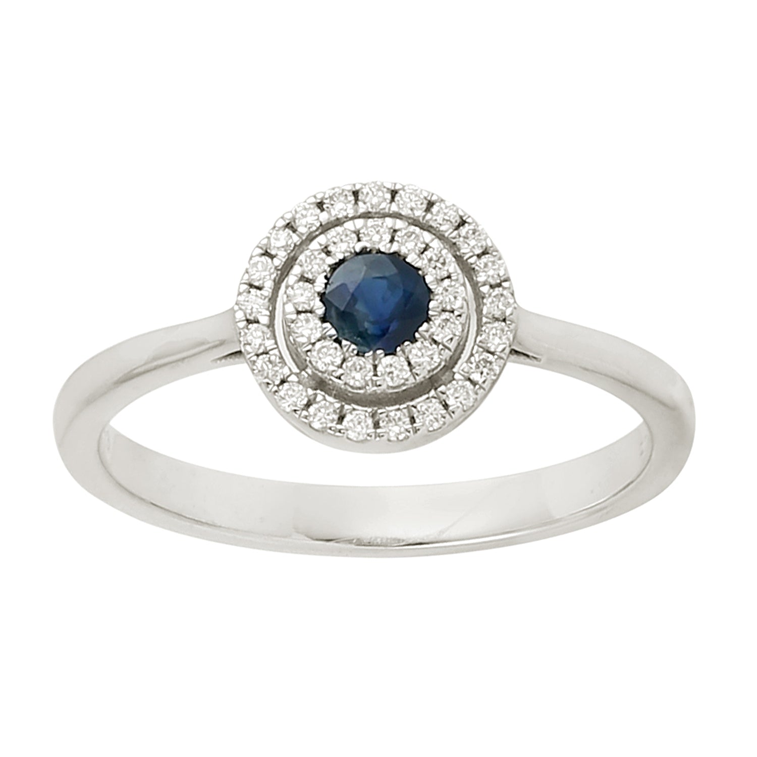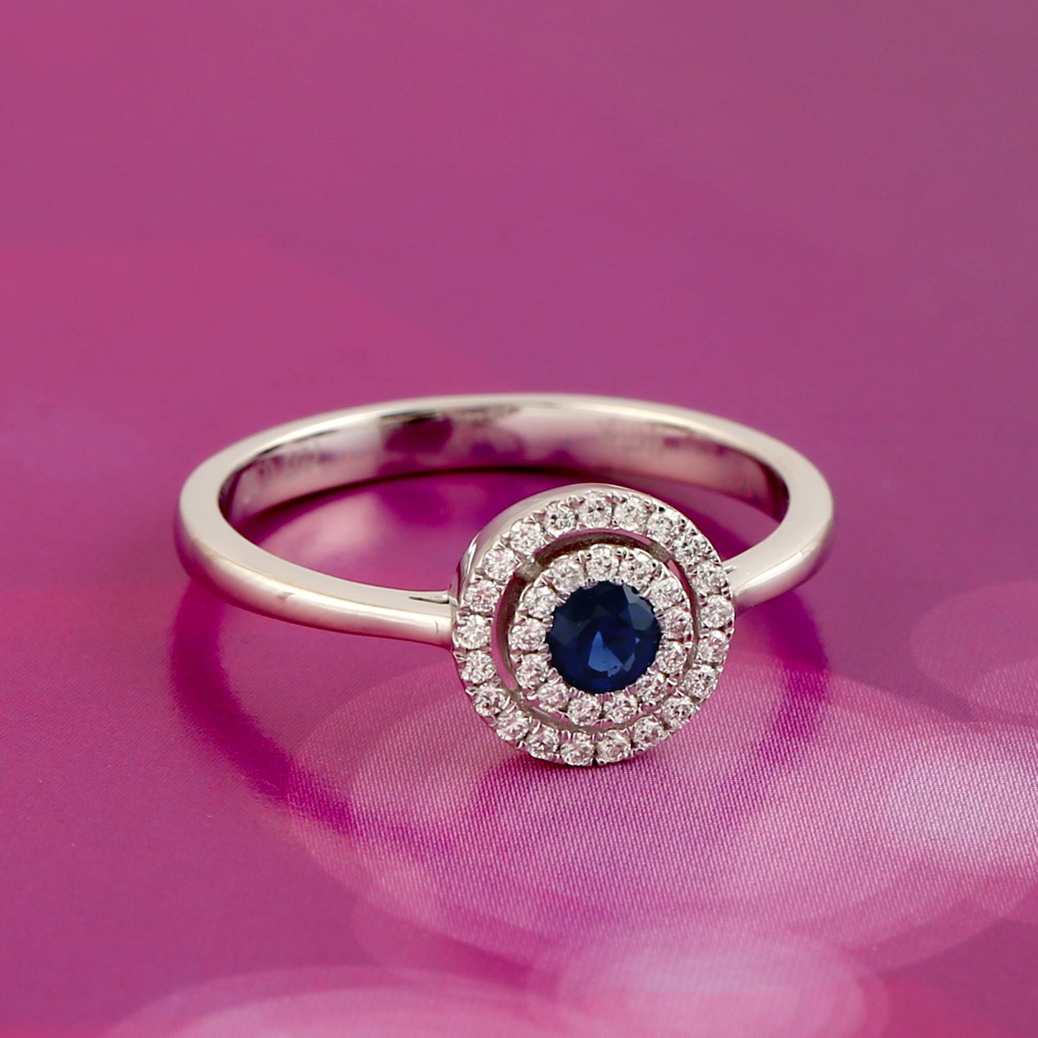 Natural Diamond Blue Sapphire Band Ring in 14k White Gold For Her
