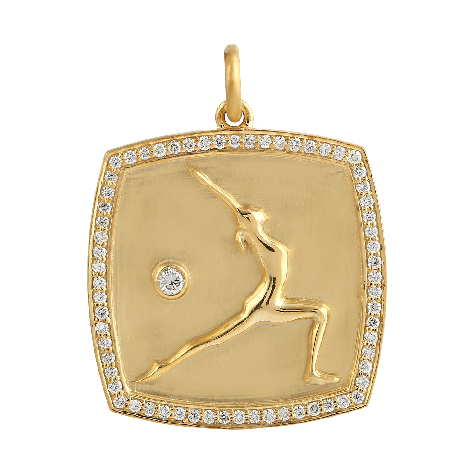 • Pave Diamond Virbhadrasana Yoga Pendant In 14k Yellow Gold
