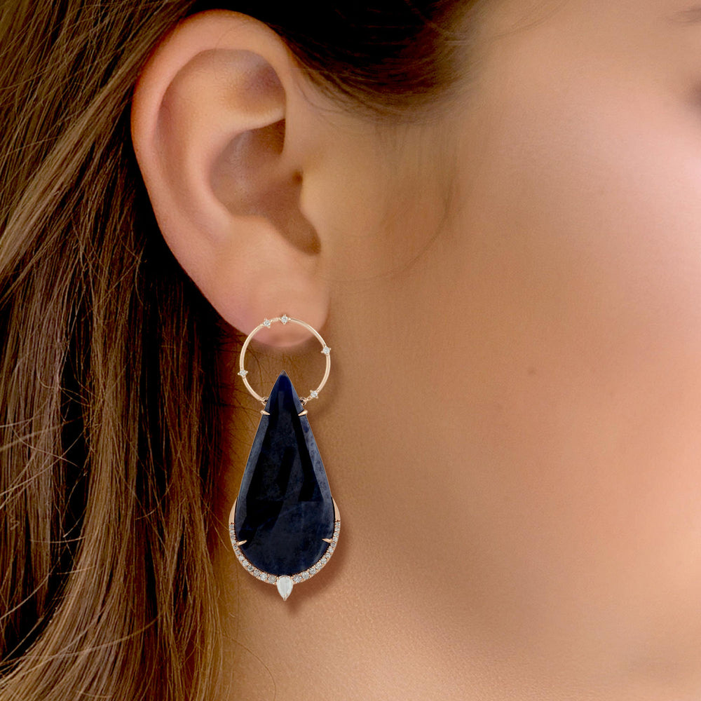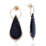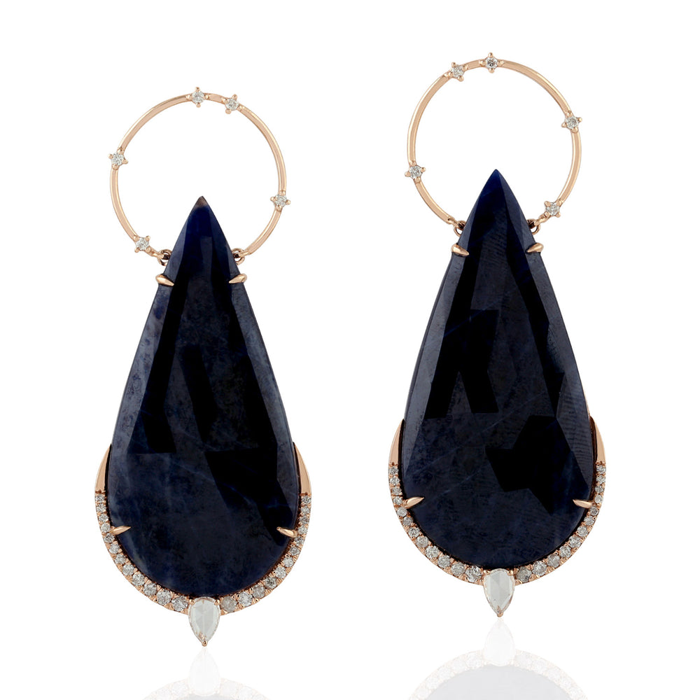 Pear Cut Blue Sapphire Gemstone Pave Diamond In 18k Rose Gold Dangler