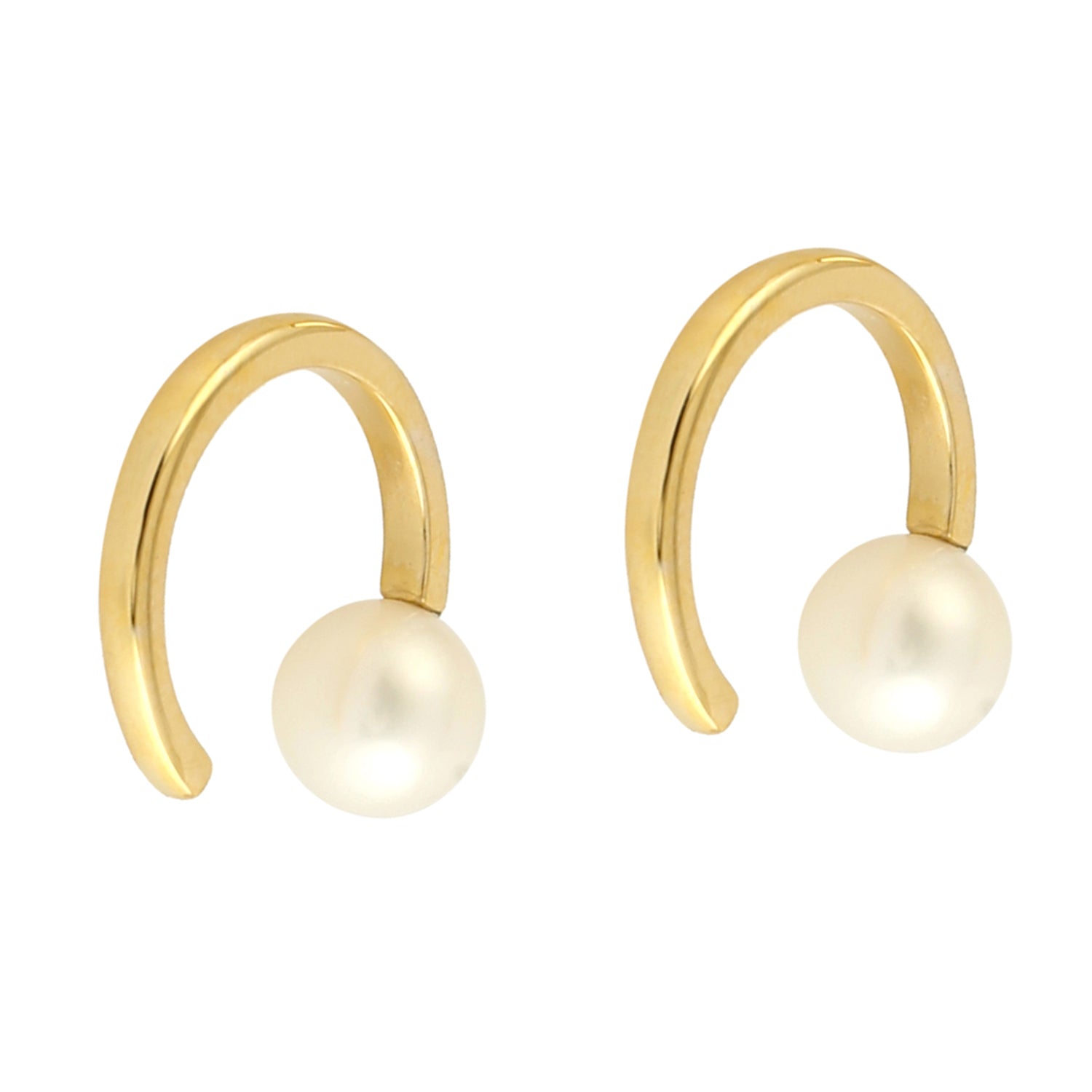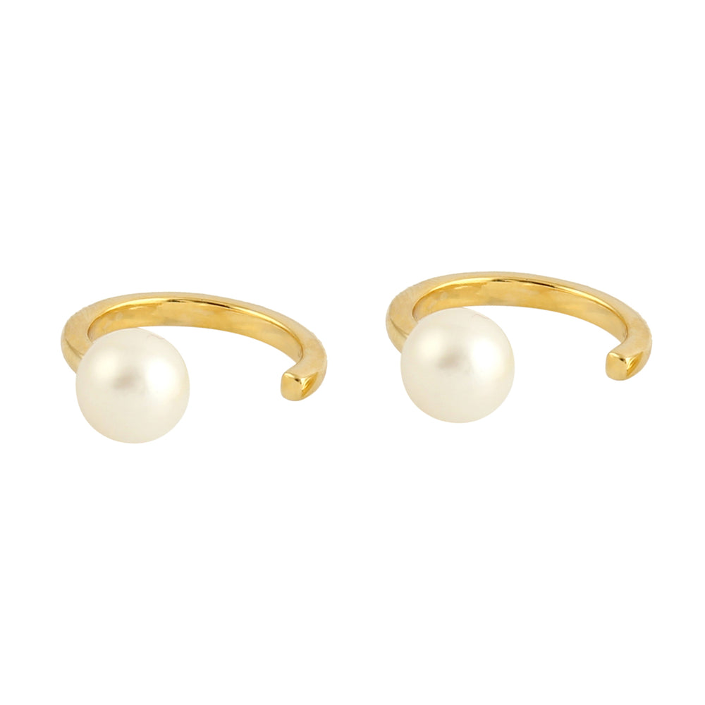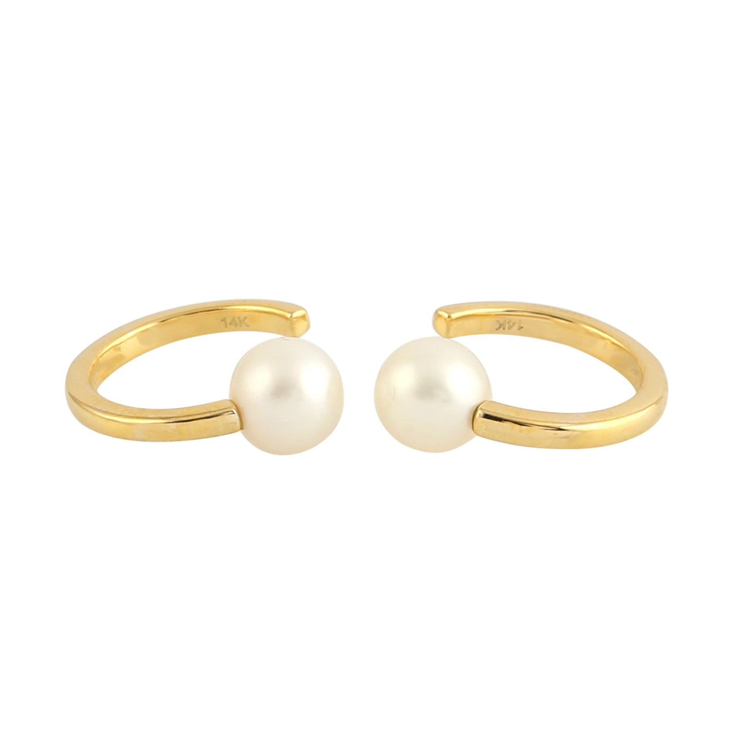 Pearl June Birthstone Ear Cuff Earrings in 14K Yellow Gold – Minimalist Gift for Her
