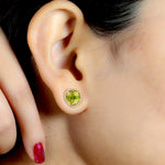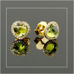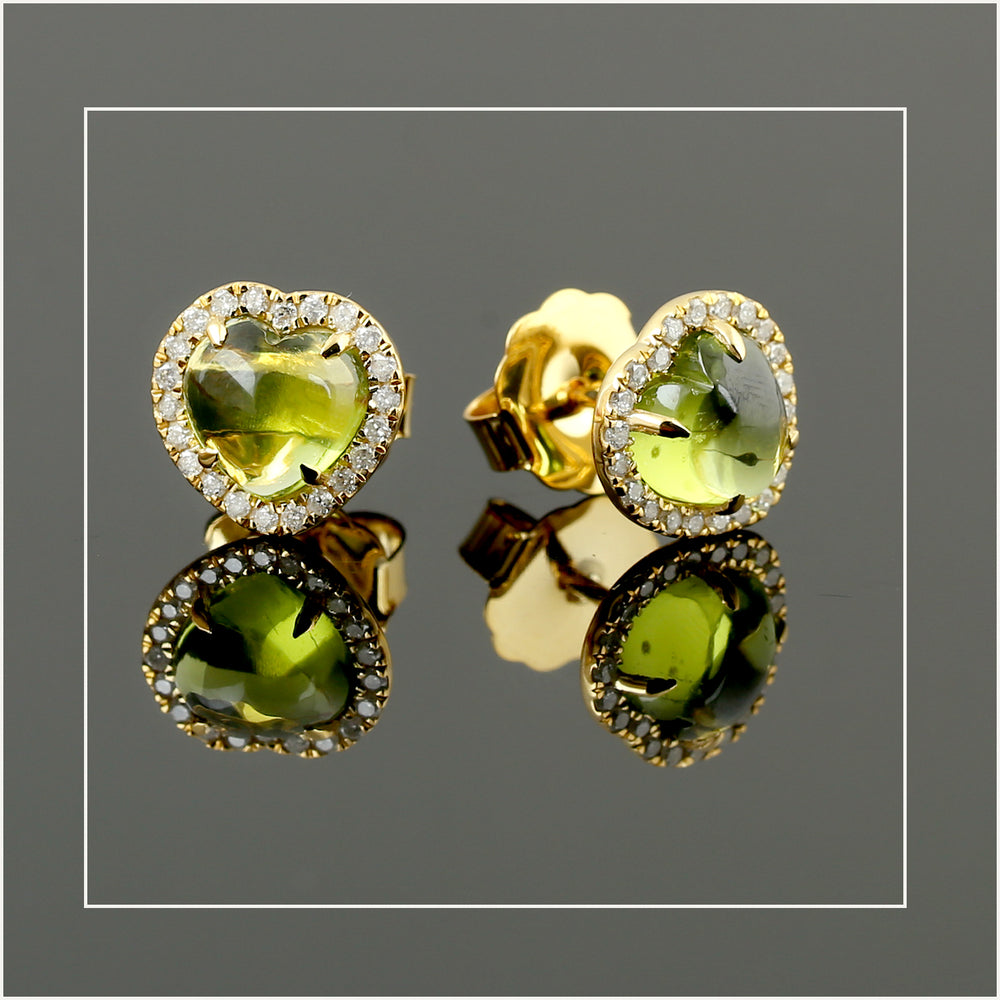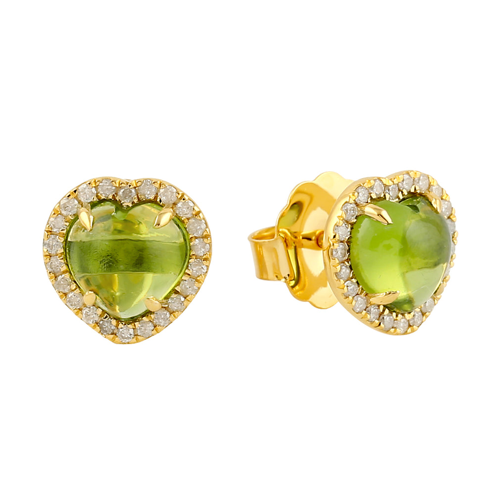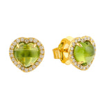 Peridot Gemstone Pave Diamond Heart Stud Earrings In 14k Yellow Gold