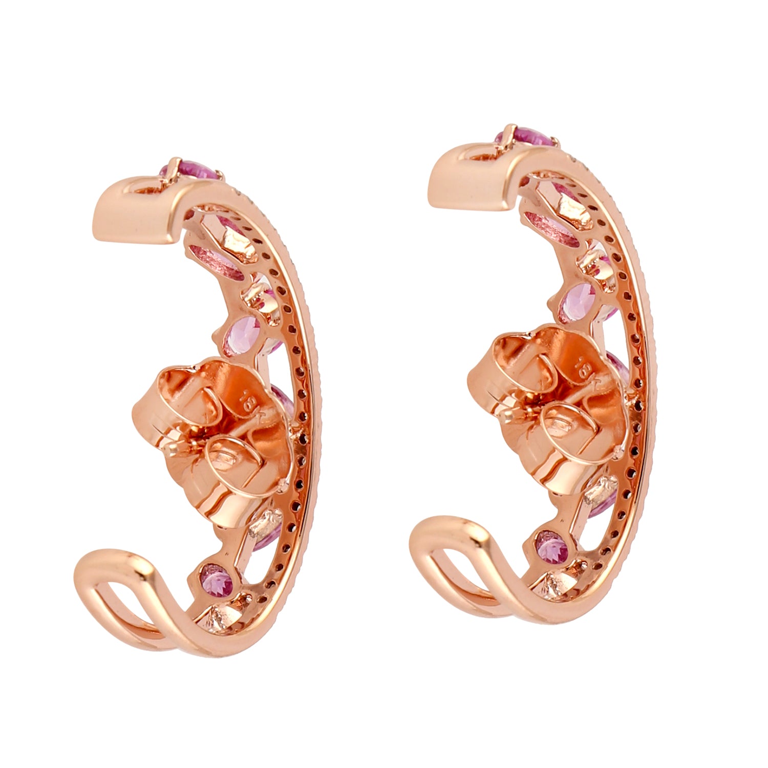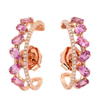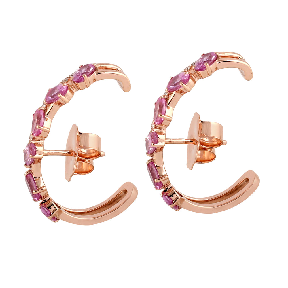 Pink Sapphire Gemstone Pave Diamond In 18k Rose Gold Half Hoop Earrings