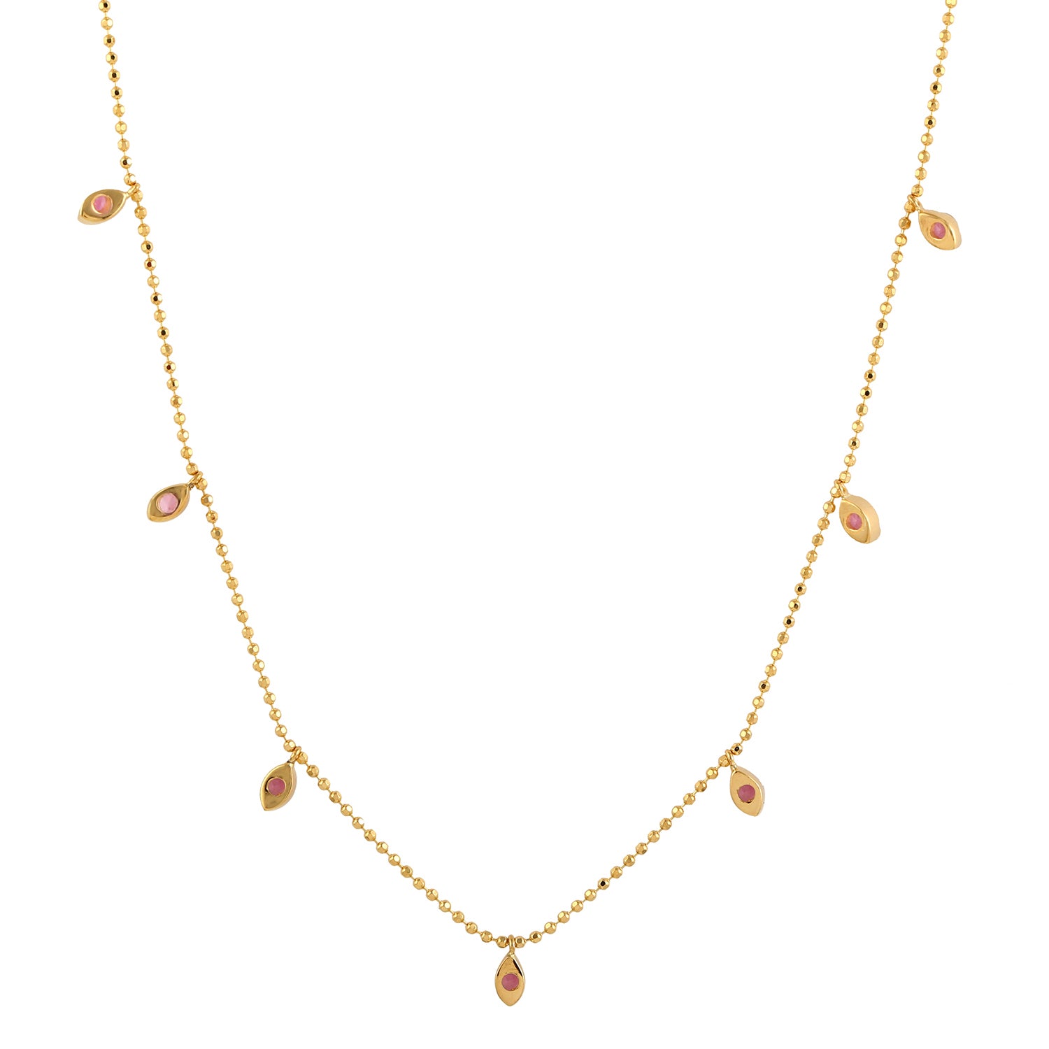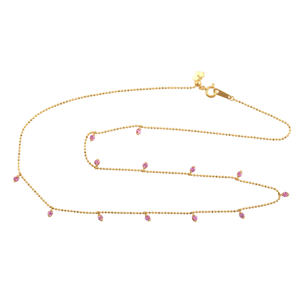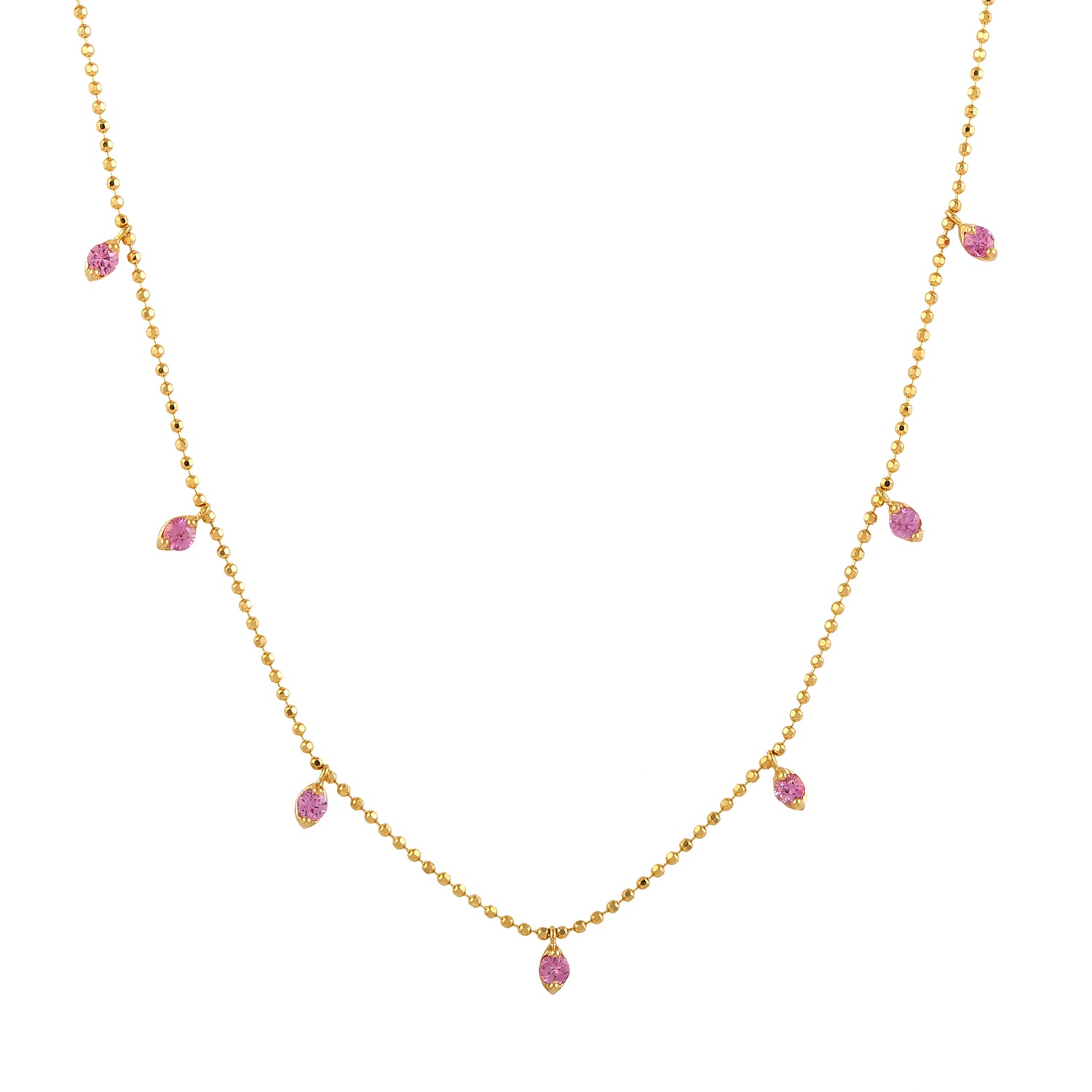 Pink Sapphire Gemstone Dot Bead Chain Necklace in 18K Yellow Gold – Dainty Jewelry