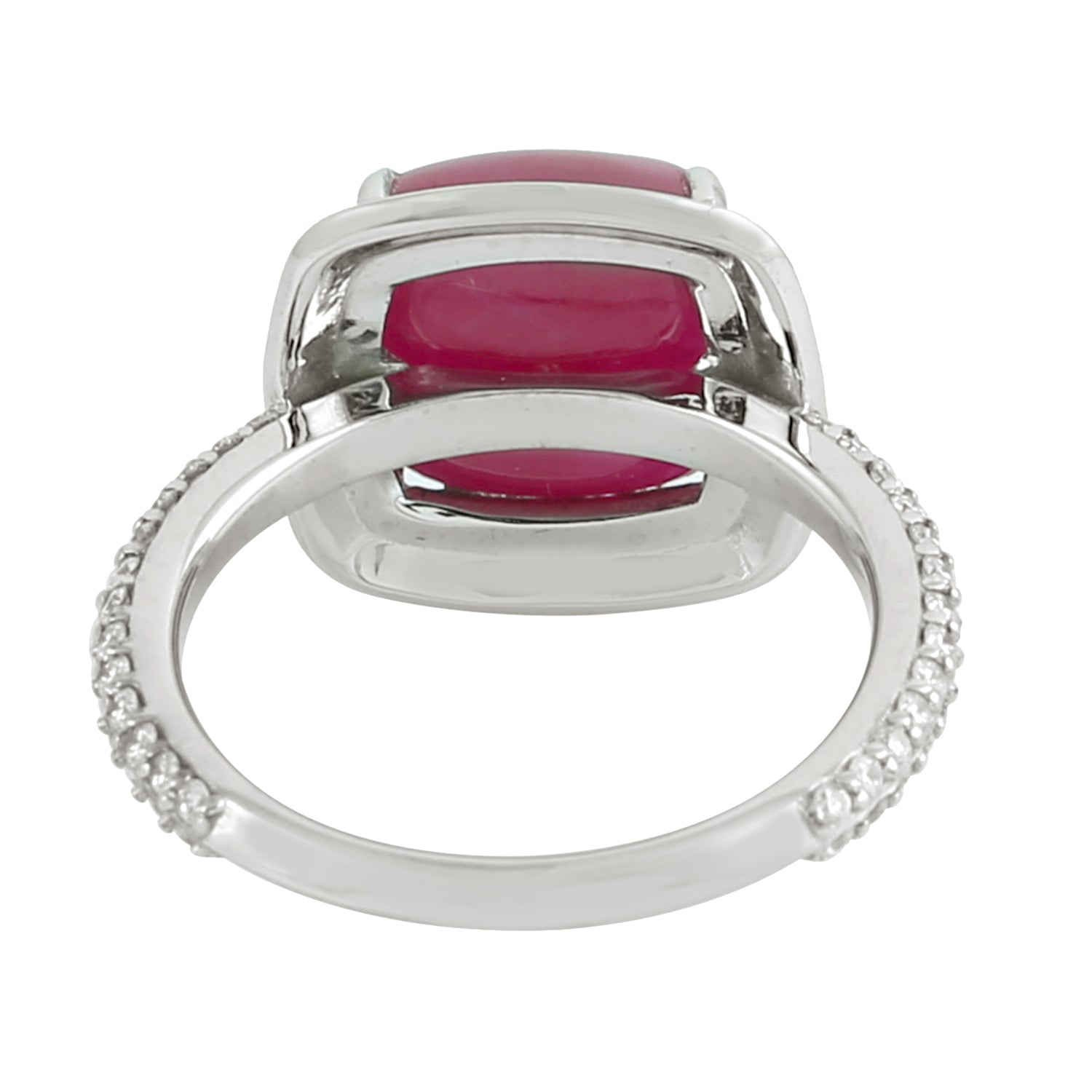 Pyramid Cut Ruby Pave Diamond Enamel Solitaire Ring In 18K White Gold